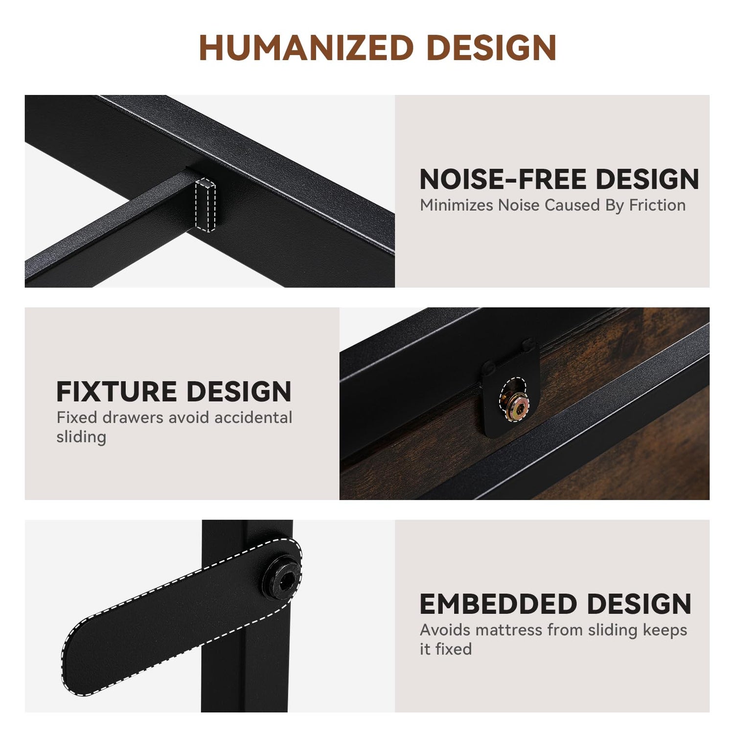 - 【Portable Charging Station】 2 AC Outlets,1 USB ports and 1 Type-C ports set on the headboard so that you can charge your phone, desk lamp, etc. Multiple plugs can be used simultaneously to make charging easier