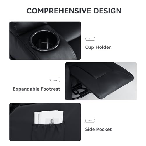 COMHOMA Recliner Chair Set, Furniture 3PC Bonded Leather Recliner Set Living Room Set, Sofa, Recline Chair (Black,Living Room Set 3)
