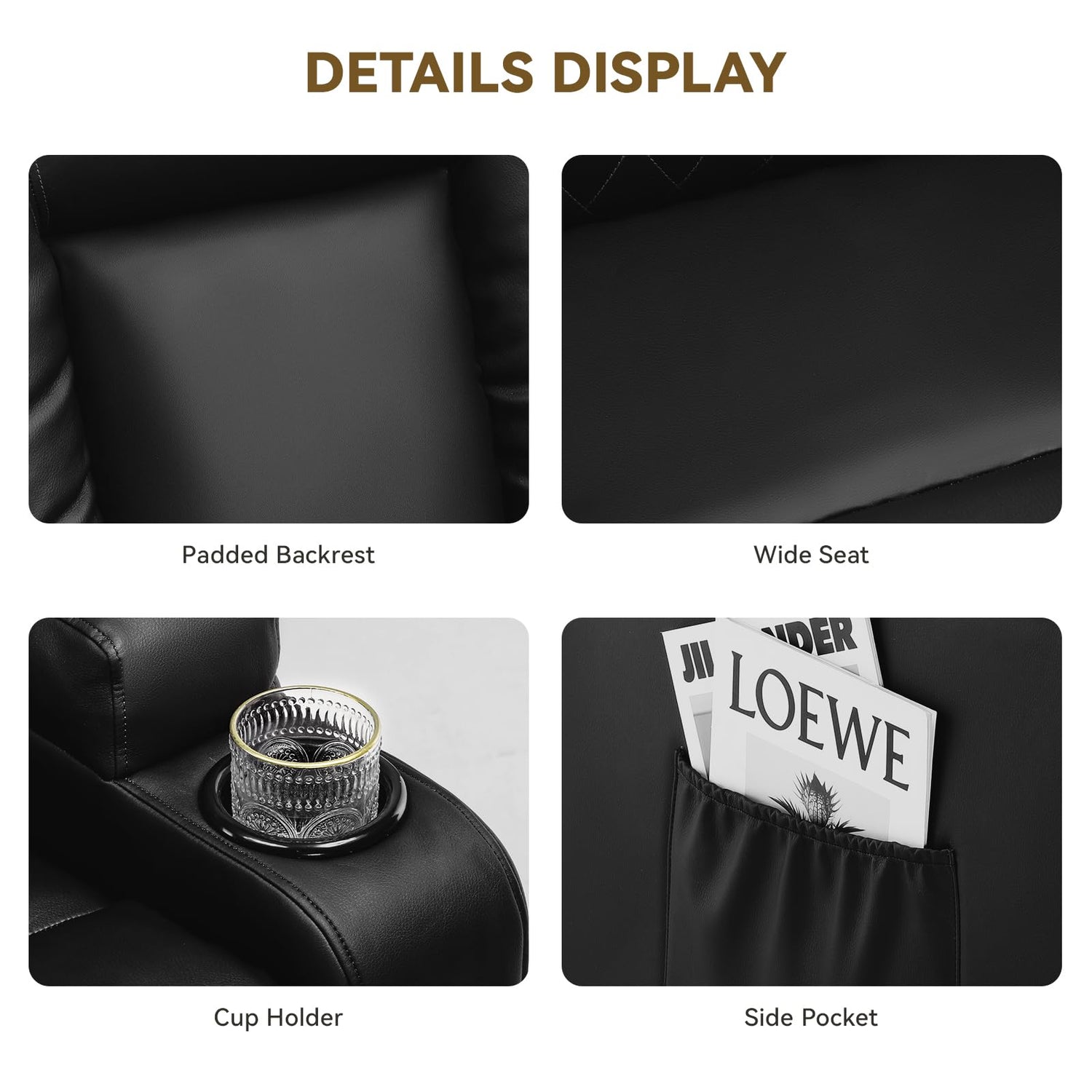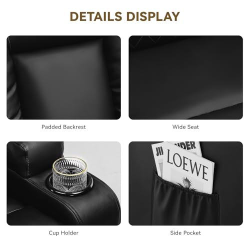 COMHOMA Recliner Chair, Swivel Rocker Recliners, Massage and Heat Reclining Chair, Reclining Sofa with Side Pockets, Cup Holders for Living Room, Bedroom (Black)