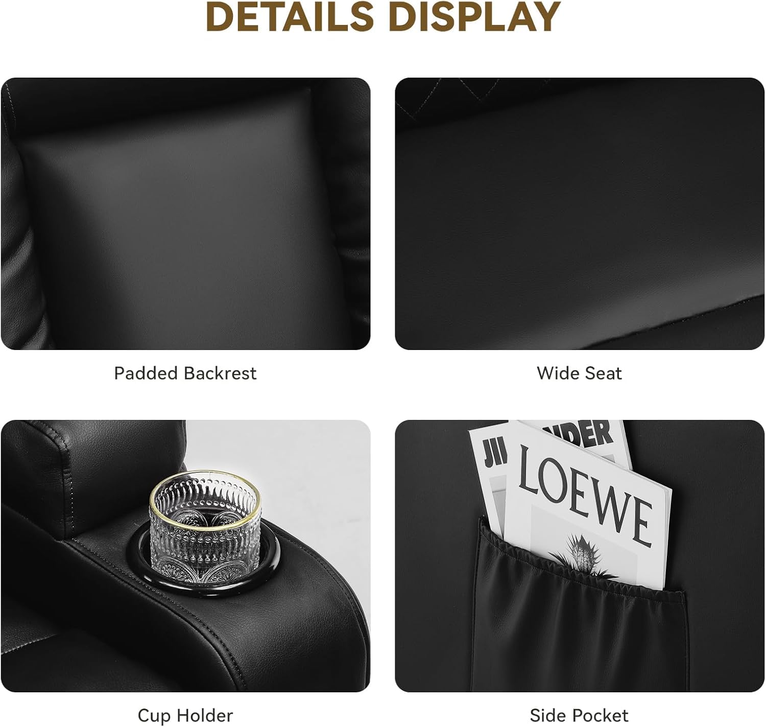 COMHOMA Recliner Chair, Swivel Rocker Recliners, Massage and Heat Reclining Chair, Reclining Sofa with Side Pockets, Cup Holders for Living Room, Bedroom (Black)