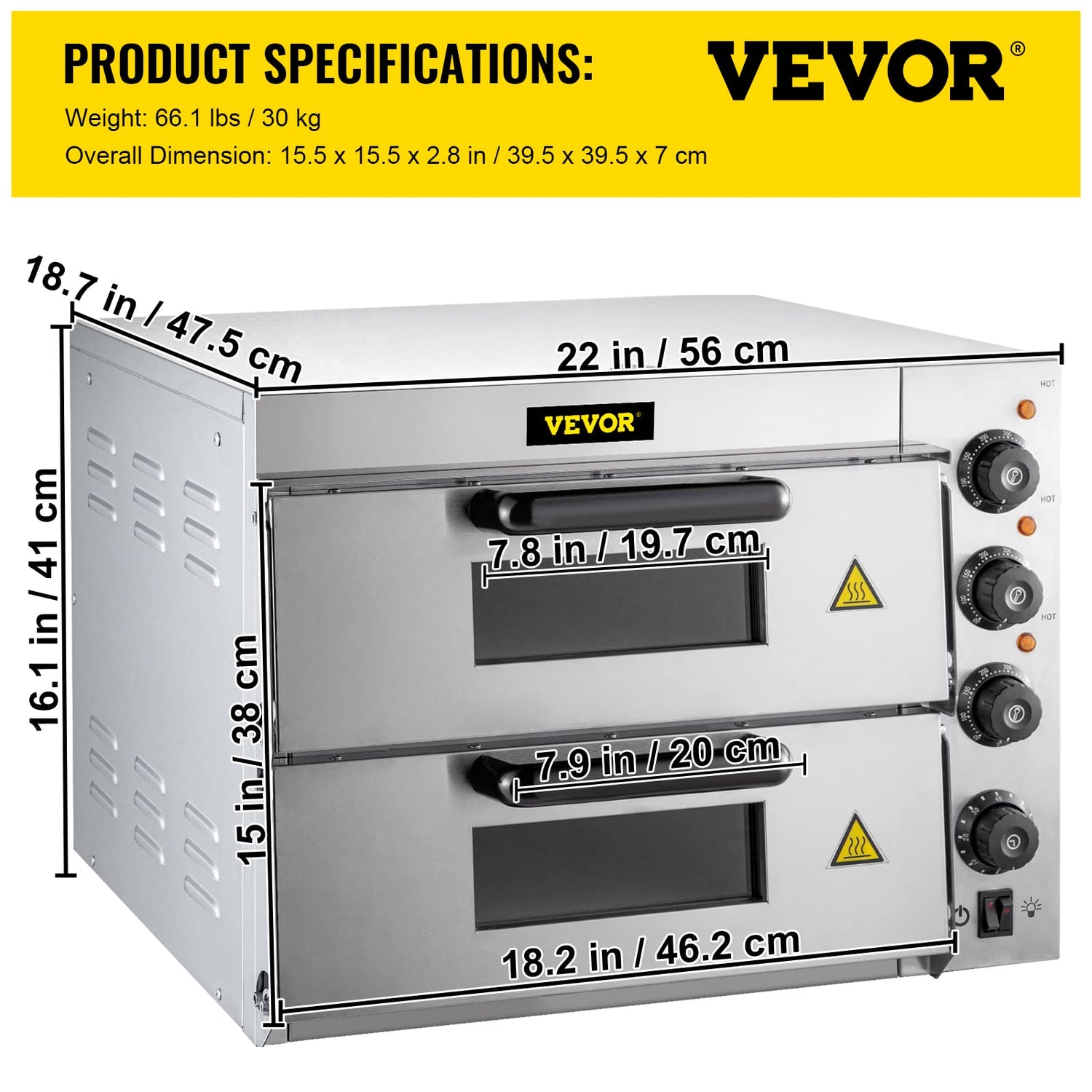 - Premium Pizza Oven: Made of superior stainless steel, our well-bulit commercial pizza oven is certain to endure a long-term use. The large capacity of double-layer accommodates at least two pizzas (each up to 14"), can also hold our 15.6 x 15.6-inch pizza stone or a 15.5 x 15.5 x 2.8-inch shelf.