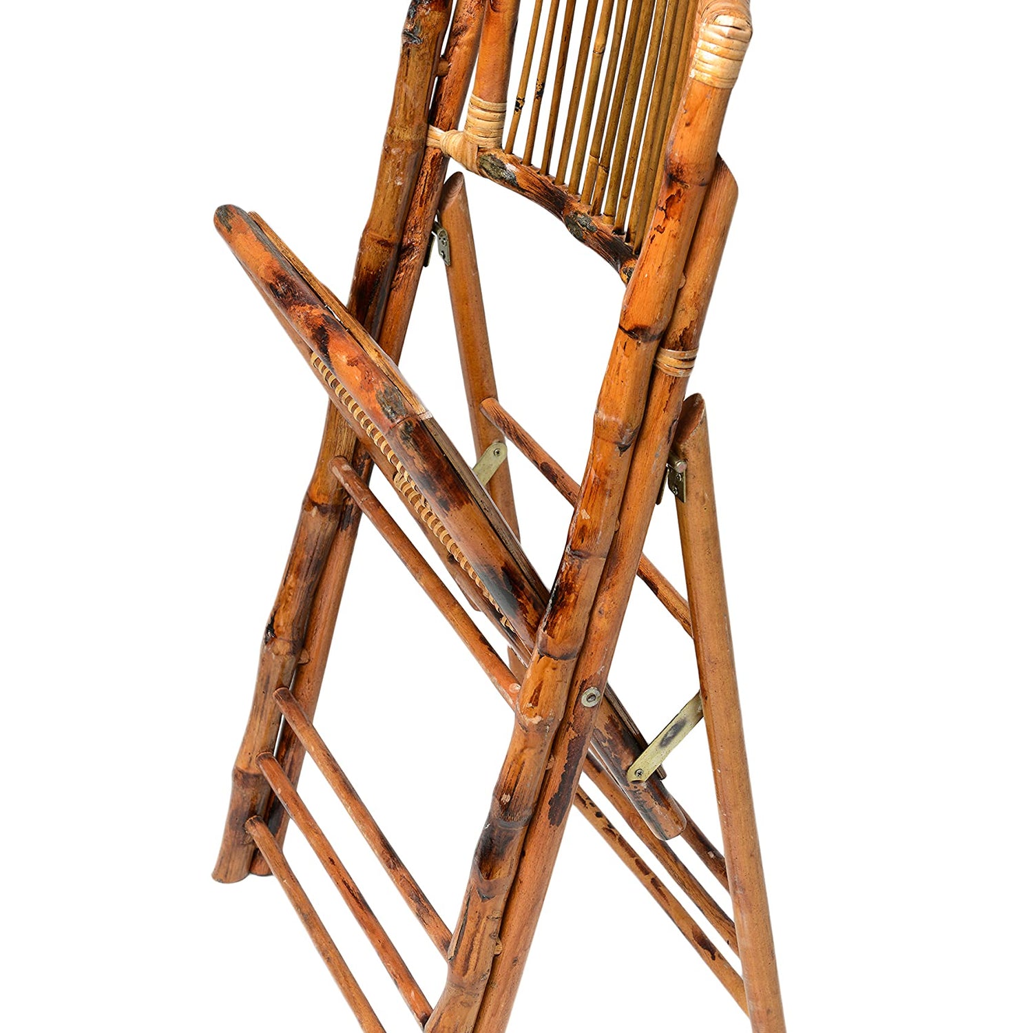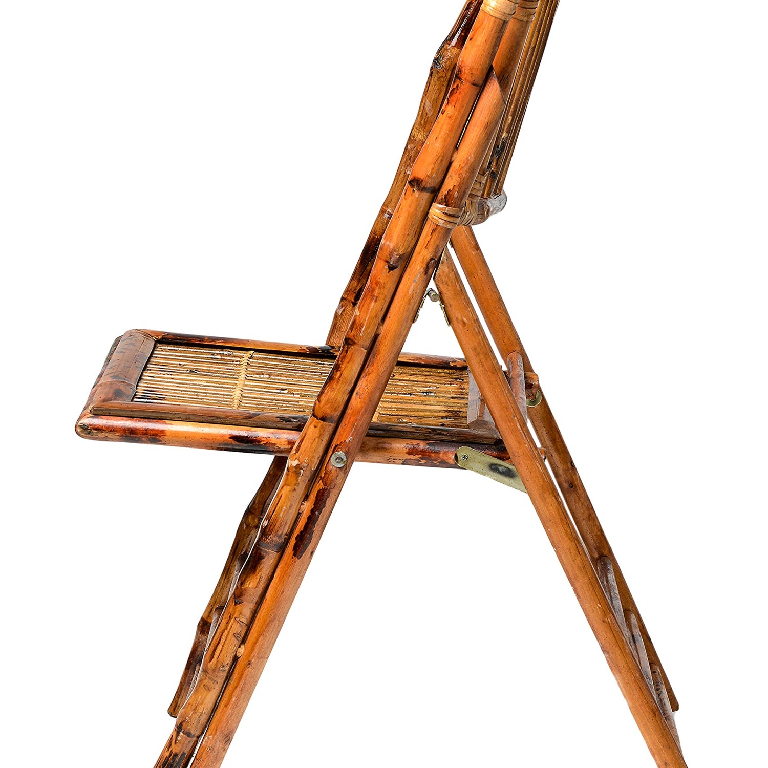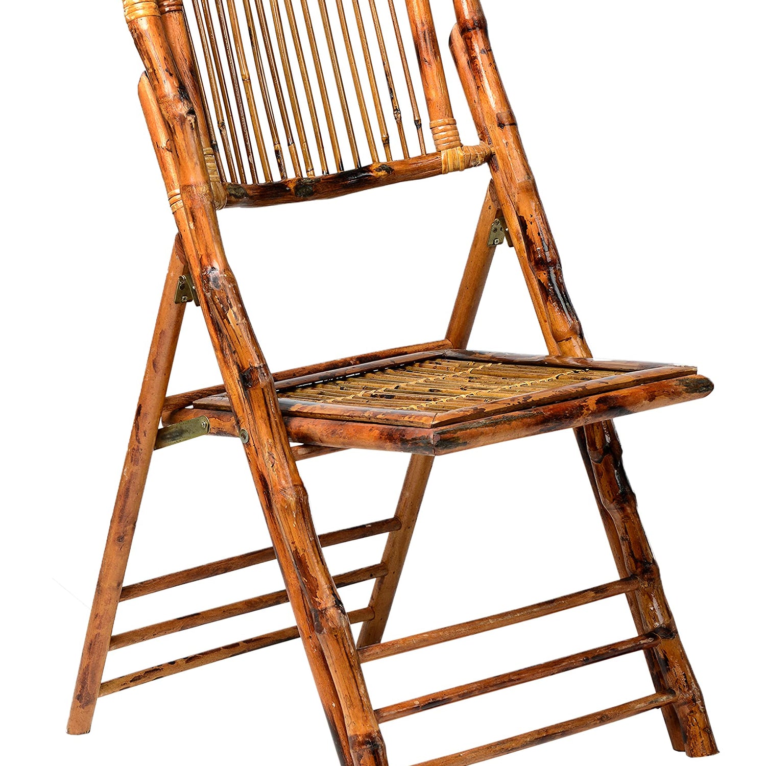 Details: This folding chair is made out of bamboo Wood and rattan. Seat, legs and frame are connected by premium glue, screws, and metal hinges, along with mortise and Tenon joints. These chairs are also finished with a durable high clear gloss. Great for indoor and outdoor