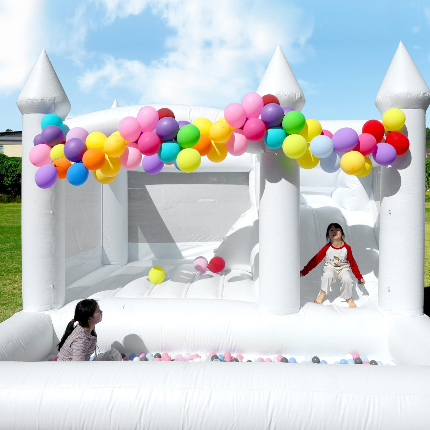 Commercial White Bounce House for Adults Kids, 100% PVC Commercial Bounce House with Ball Pit&Slide, Adult Bounce House with Blower, Inflatable Balloon Bubble House Wedding, 13x13x10FT