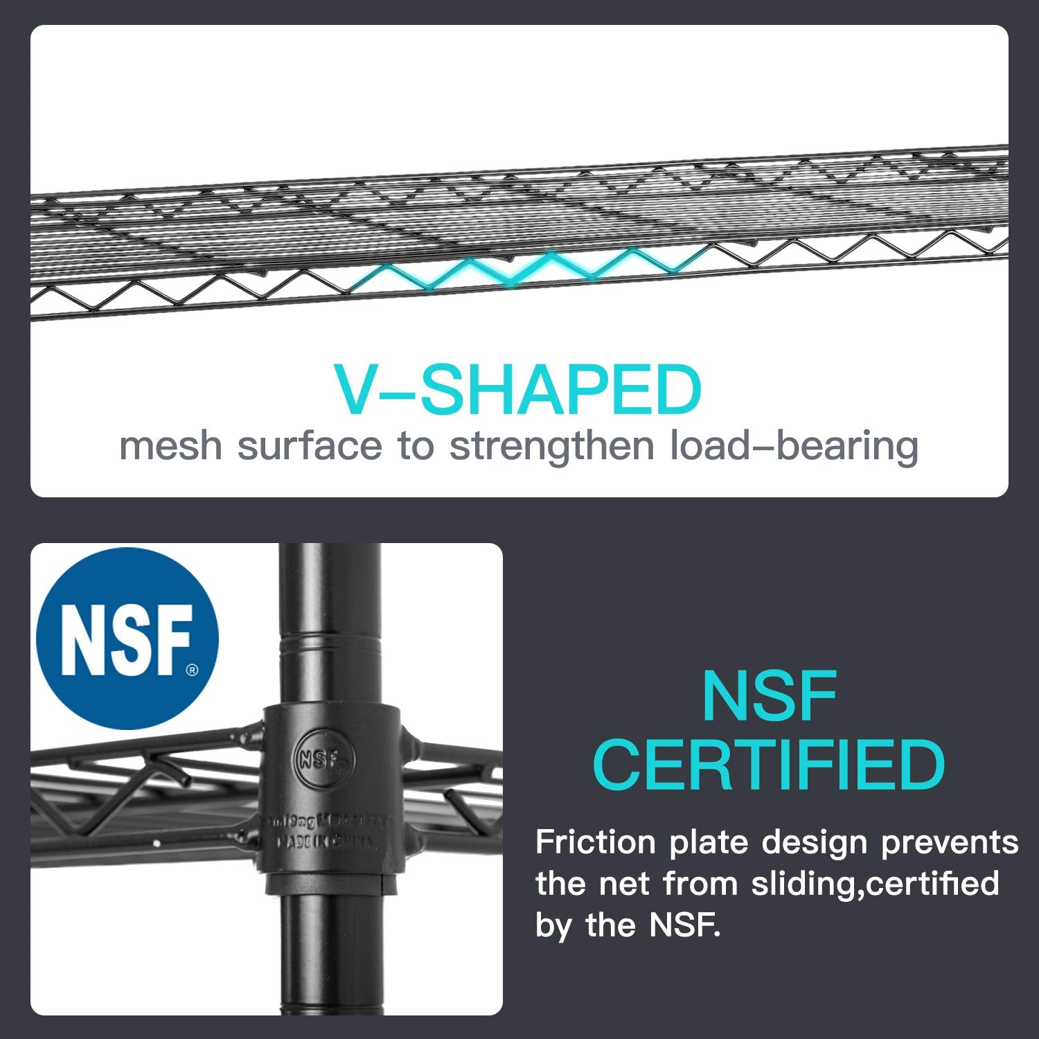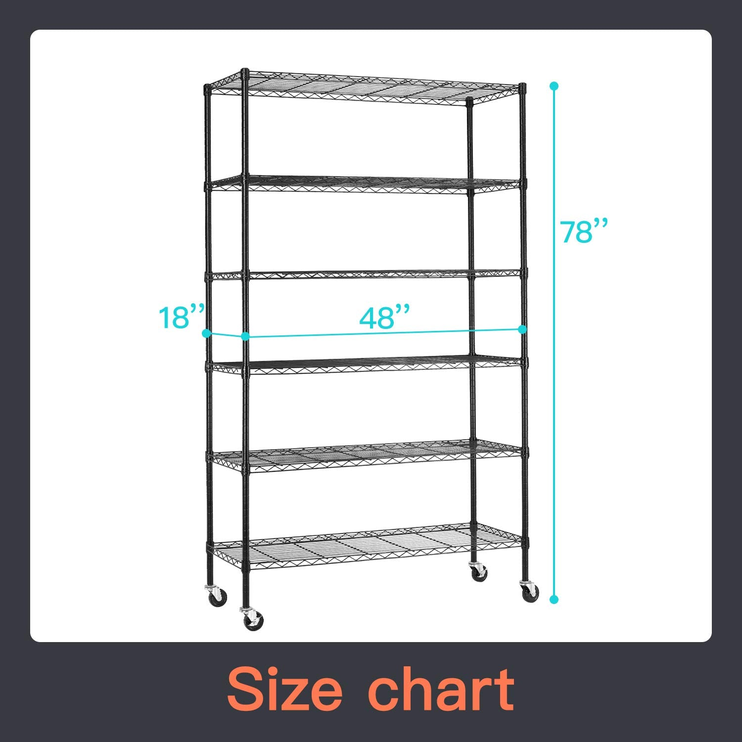 Commercial Wire Shelving Unit Metal Shelf Casters Adjustable Layer Rack Strong Steel for Restaurant Garage Pantry Kitchen Garage (48×18×72, Black)