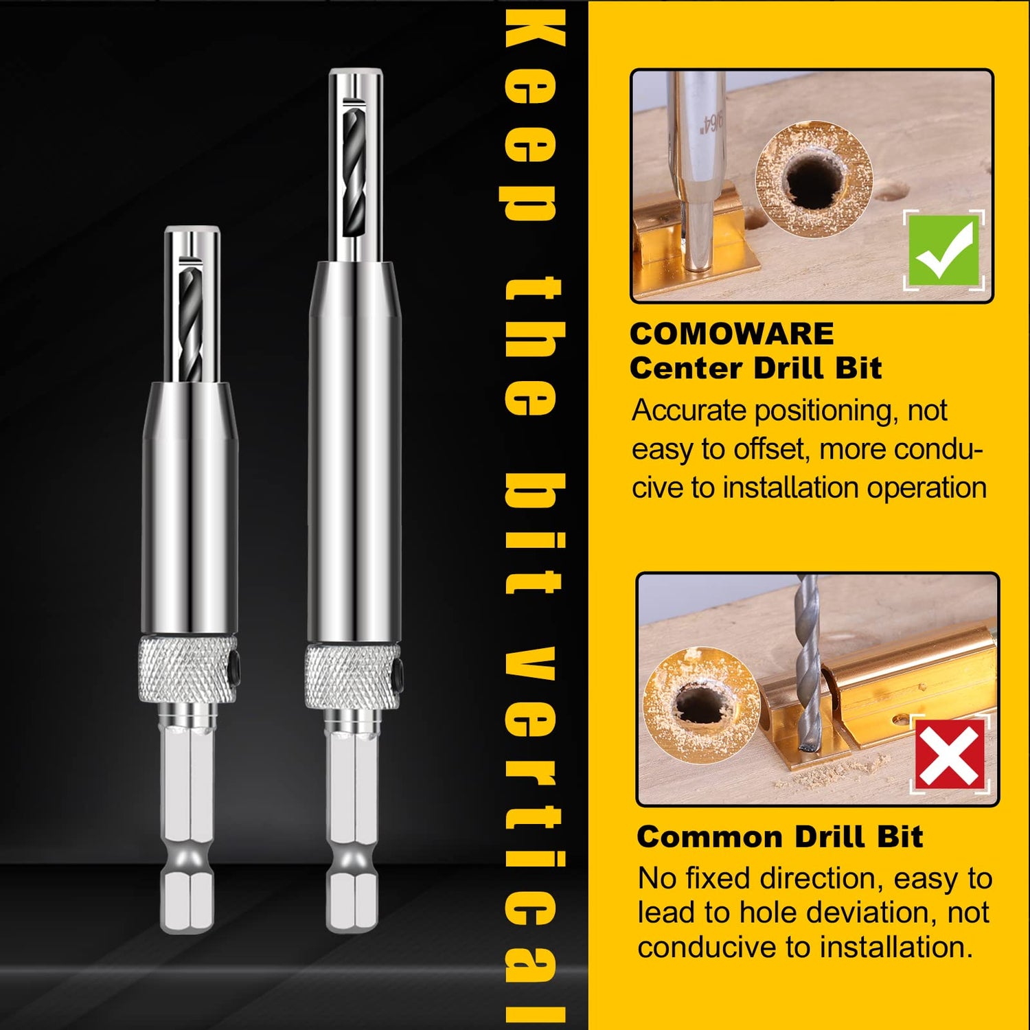 - Accurate Tool: Adjustable design allows you to replace drill easily. The automatic positioning center improves positioning accuracy and efficiency. Wood chips will be automatically discharged from the holes on both sides of the top of the bit, which will not block the bit. It is a must for professionals and DIY personnel.holes, They make alignment of holes so much easier and you can get center every time