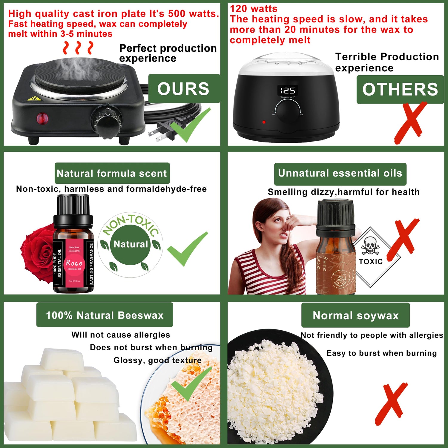 Complete Candle Making Kit With Wax Melter, Candle Making Supplies, DIY Arts&Crafts Kits Gift For Adults,Beginners,Including Bees Wax,500w Electric Stove,Wicks,Rich Scents,Wick Clips,Pouring Pot Etc.