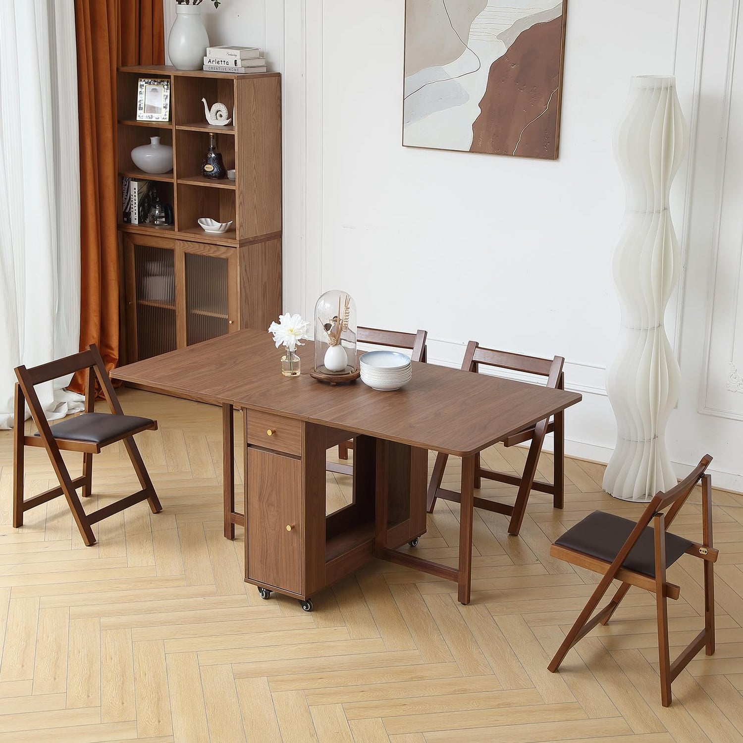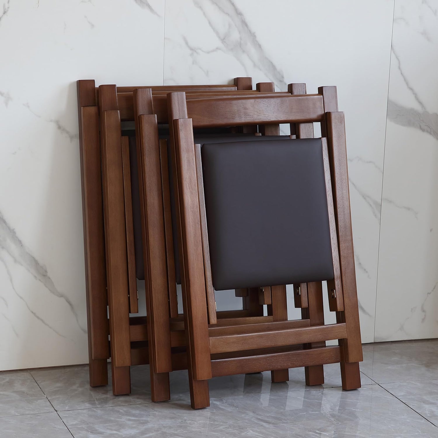 - 1. Foldable & Stable: The folding chairs is designed with a folding function, providing to store up to 4 foldable chairs into the folding dining table storage rack. This foldable design satisfies the space-saving requirement with sturdy, bringing your apartment into its comfort zone. The triangle structure with thick legs, having two crossbars between them, which makes party chair more stable. And bearing up to 196LB is not a problem.