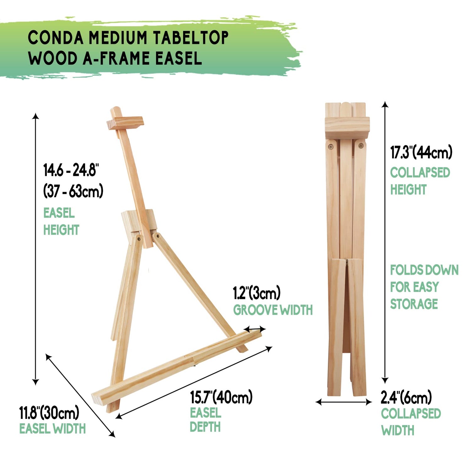 Conda 25" Folding Wooden Tabletop Easel, A-Frame Artist Desktop Painting Easel Stand, Holds Up to 23" Canvas, Portable Canvas Photo Picture Sign Holder