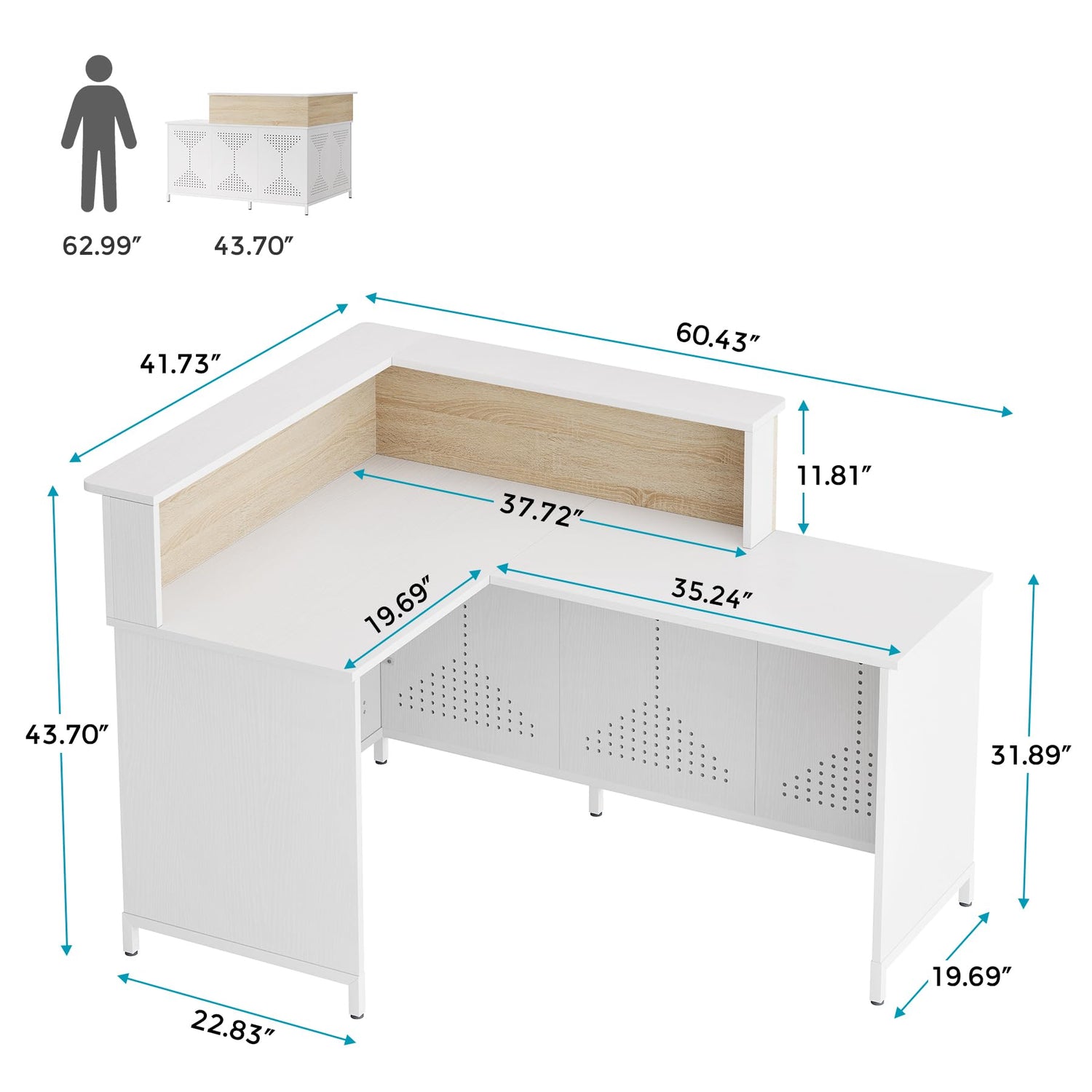 - 【Spacious Desktop and Comfortable Leg Room】: This reception desk features a spacious L-shaped top that provides plenty of workspace, allowing you to welcome clients with ease; the designer has thoughtfully considered privacy and legroom, ensuring you feel comfortable during use