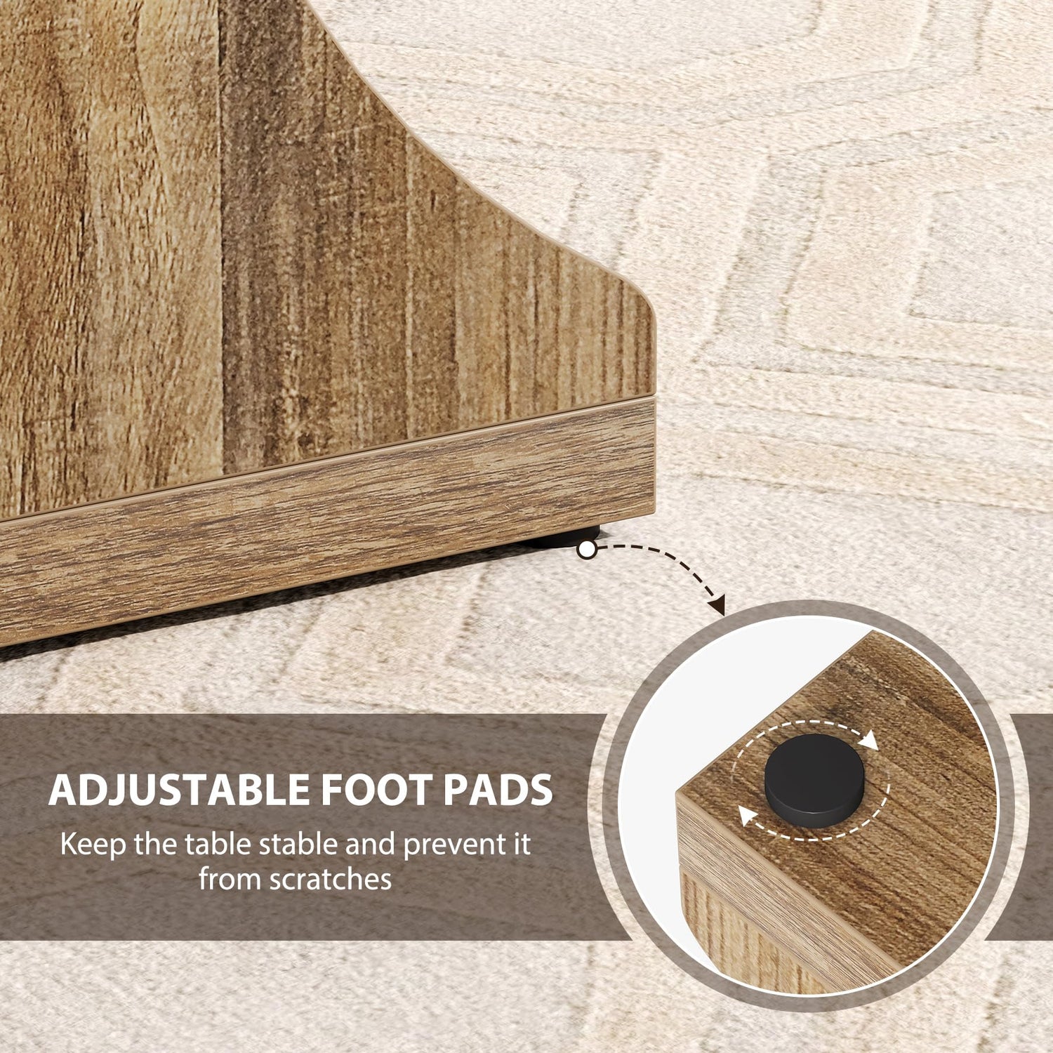 - 【Crafted for Durability】: Crafted with premium MDF, this country end table features 1.18 inches top/base panels and 0.59 inches side panels for exceptional durability. The solid structure provides reliable support for your daily essentials, from heavy lamps to stacked books, without compromising its sleek profile. Adjustable leg pads keep it stable even on uneven ground