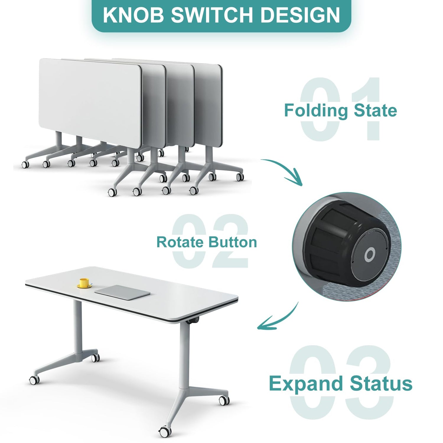 - ✅【Foldable Conference Room Table】Our meeting table folds easily and quickly, is flexible, foldable, removable and splicable. There are enlarged folding lock buttons on both sides of the conference table. It can be folded with just a slight twist and automatically locked. After folding, it can be stacked and stored to save space and avoid office congestion.