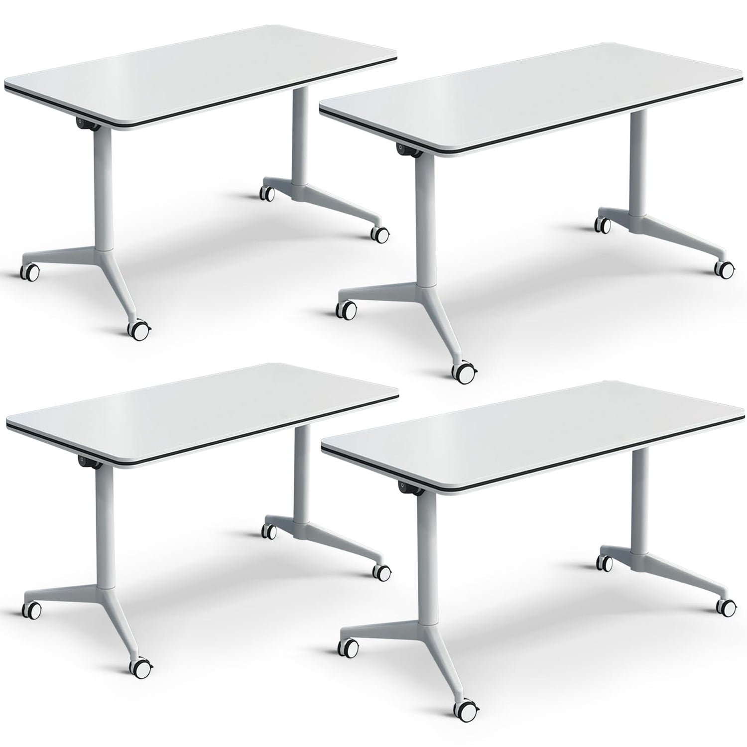 Conference Table, Folding White Flip Top Mobile Training Table with Silent Wheels,Modern Rectangle Meeting Seminar Table, Conference Room Tables for Office Training Classroom (4pcs, 55 inch)