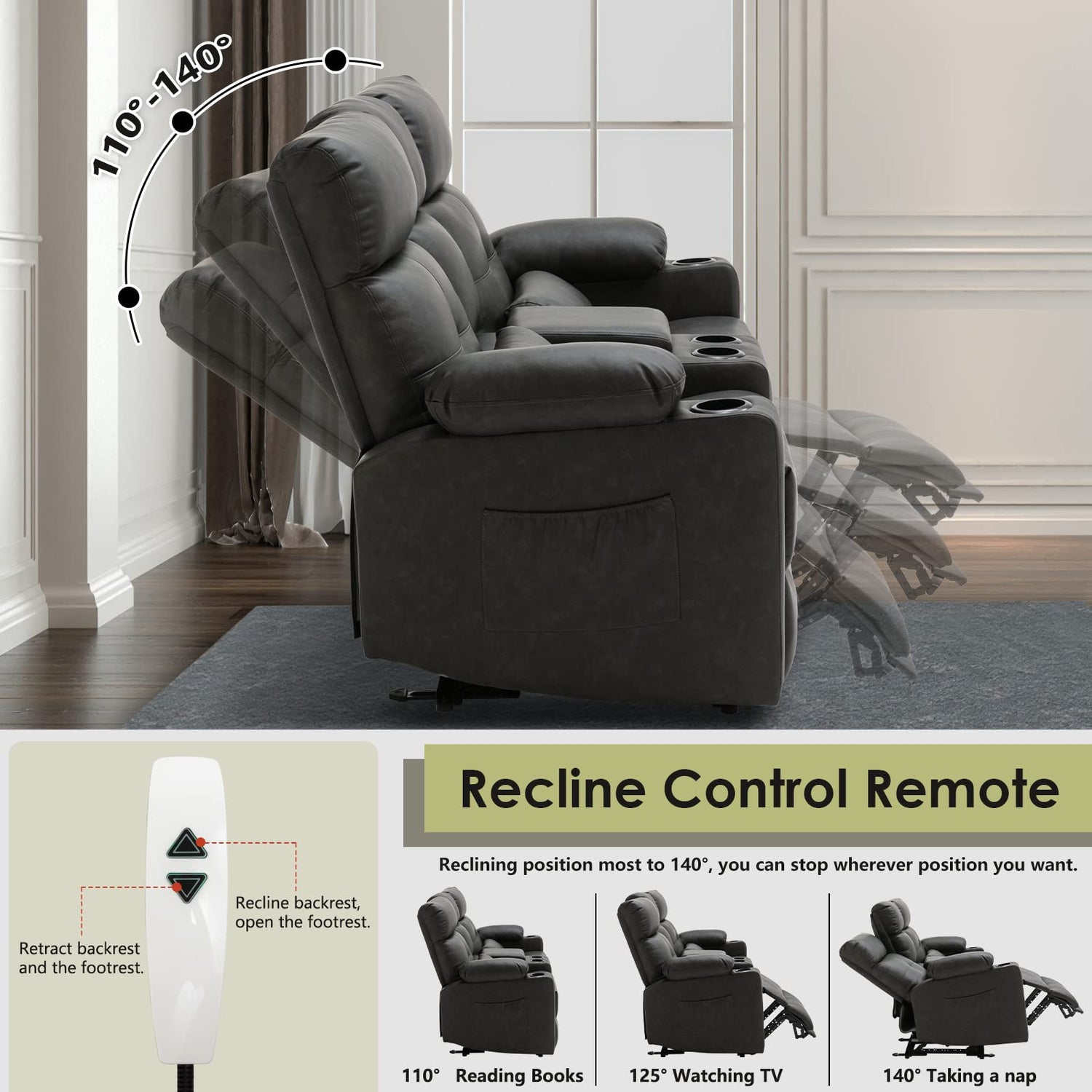 - Quality & Extended Footrest: The high-quality metal frame has been tested 25,000 times, the motor has been tested 10,000 times, and each side can withstand a maximum of 330lbs, the quality is guaranteed. There are total 8 anti-fall brackets on the front and rear to make the power reclining loveseat with console more stable and provide you with plenty of safety. By the way, we've added up to 4.3 inches of extension to the footrest so you can really stretch your body fully