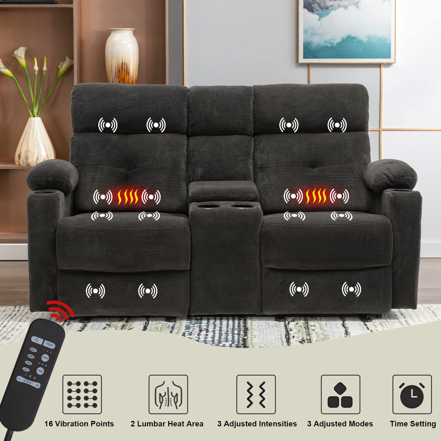 Consofa Power Reclining Loveseat with Console, Power Loveseat Recliner Sofa with Heat and Massage, Extended Footrest, Reclining Loveseat with Cup Holders, Lumbar Support for Living Room, RV Loveseat