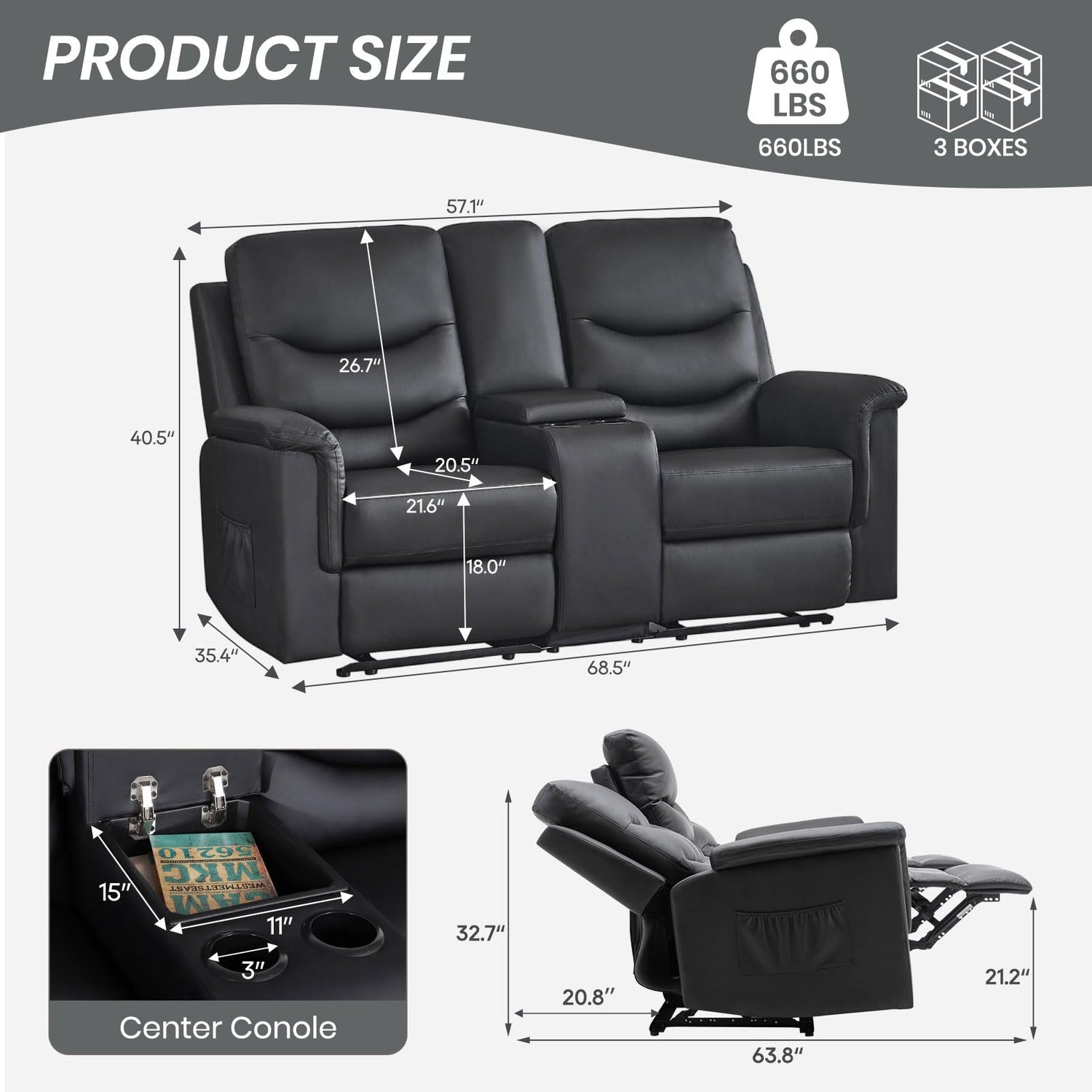 - Storage Console And Cup Holders: This wall hugger loveseat recliner has a hidden storage compartment in the center console and 2 side pockets for easy storage of remotes, magazines, or other essentials, the 2 cup holders keep your drinks within reach while watching a movie, reading, or gaming. Add more comfort and storage space to your living room