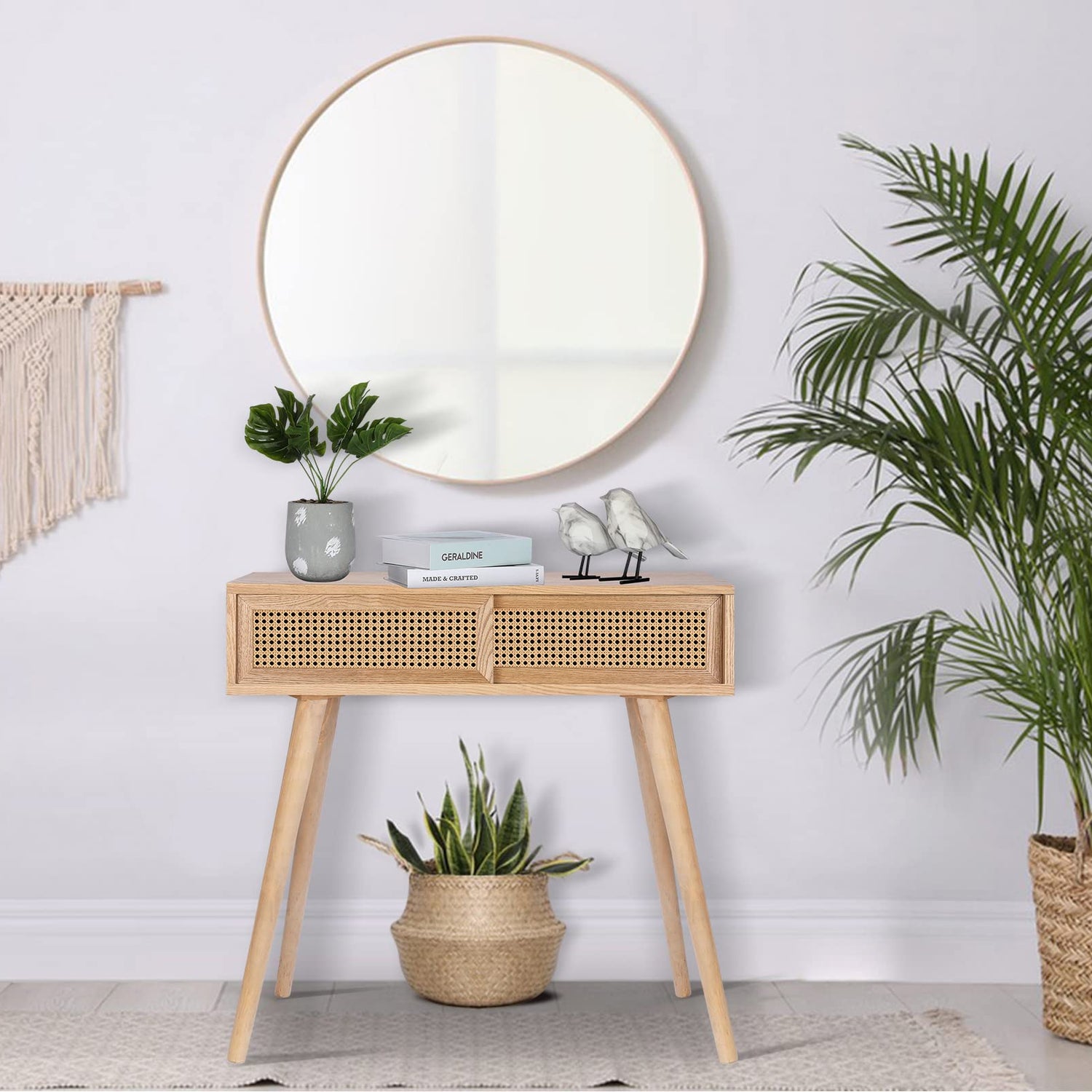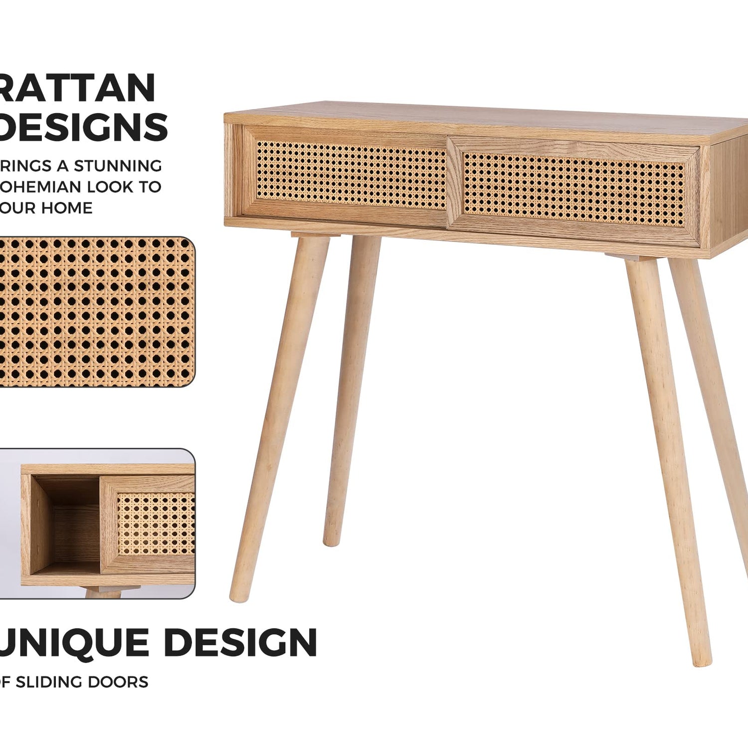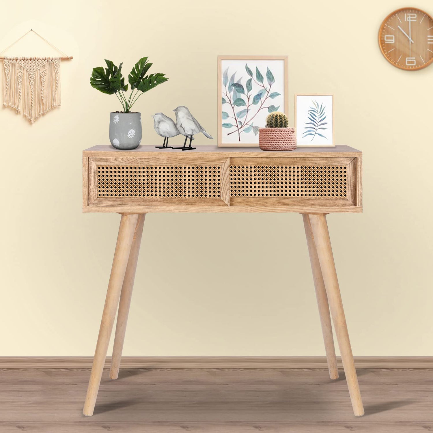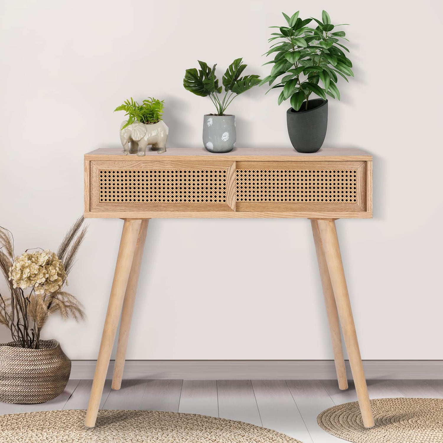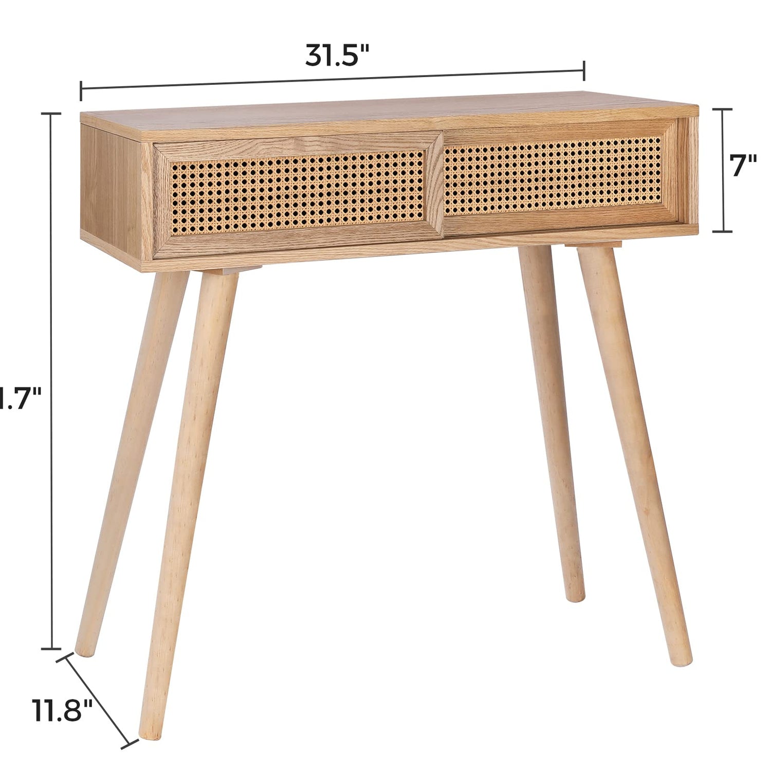 Console Table, 31" Console Tables for Entryway Small Entryway Table, Vanity Desk Rattan Dresser Side Table Entry Table Narrow Console Table Modern Hallway Table Boho Sofa Table for Living