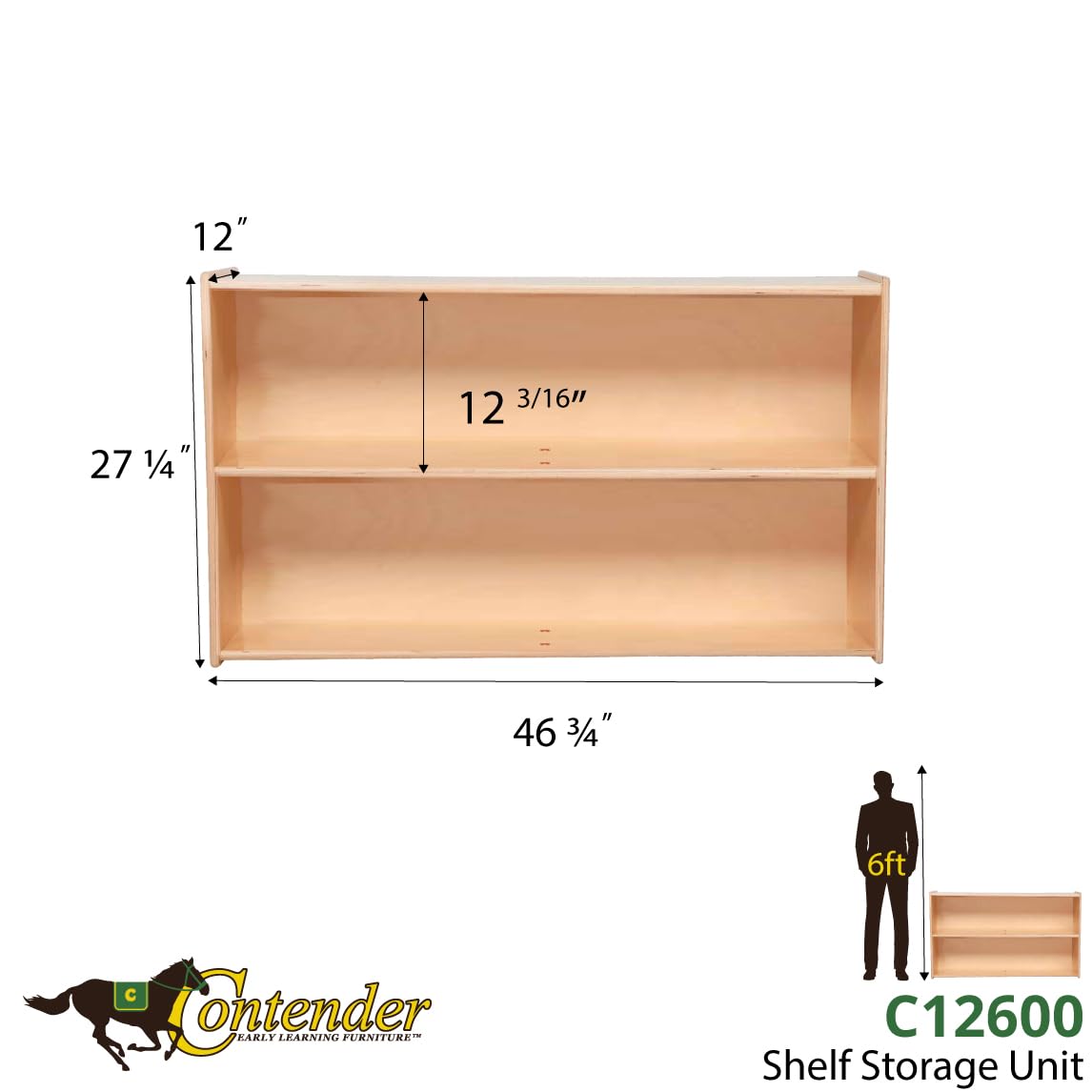 Contender 2 Shelf Horizontal Bookcase (48" Width) |Montessori Shelf - Toy Storage Organizer, Arts, Crafts & Supplies Storage Unit | for Home, Office, Classroom, Daycare