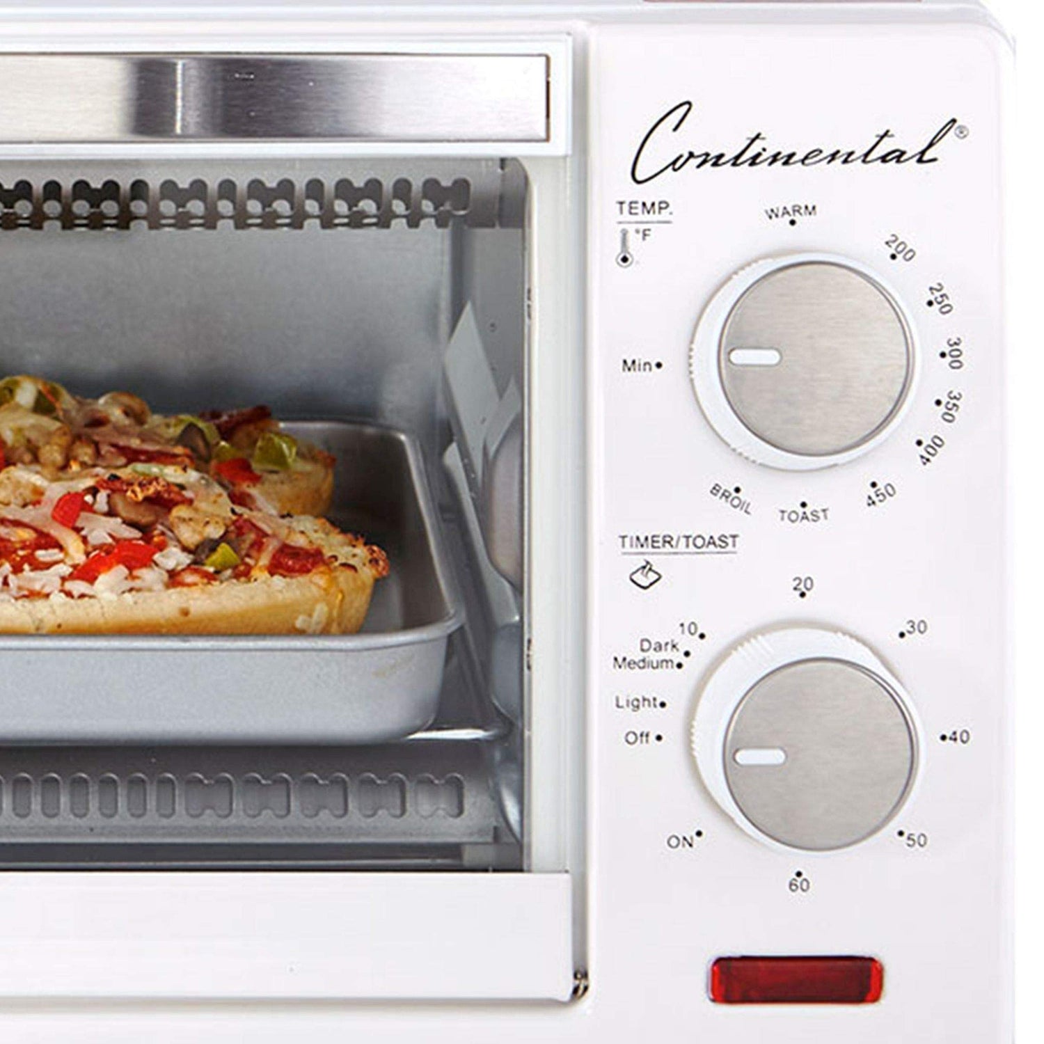 Continental Electric CE-TO101 Toaster Oven, 4 Slice, White
