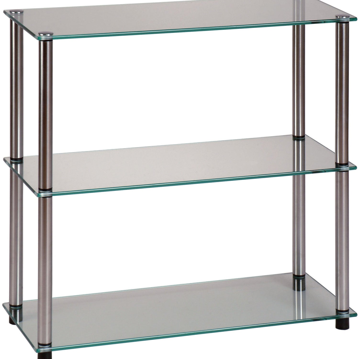 Details: Designs2Go Classic Glass 3 Shelf Bookshelf makes the perfect contemporary addition to any living space in your home. Featuring an open modern design that provides 3 spacious clear glass shelves for books, decoration, and collectibles. Each shelf is made of tempered glass making this bookshelf stylish and sturdy. The stainless-steel frame will provide additional stability and will not warp or rust over time with proper care. Plastic caps with rubber soles also cover the bottom of each pole to help protect your floors. This bookshelf is easy to assemble and can be used in any room in your home, including the bathroom. Complete your modern look by shopping the entire Designs2Go Classic Glass collection by Convenience Concepts, each sold separately.