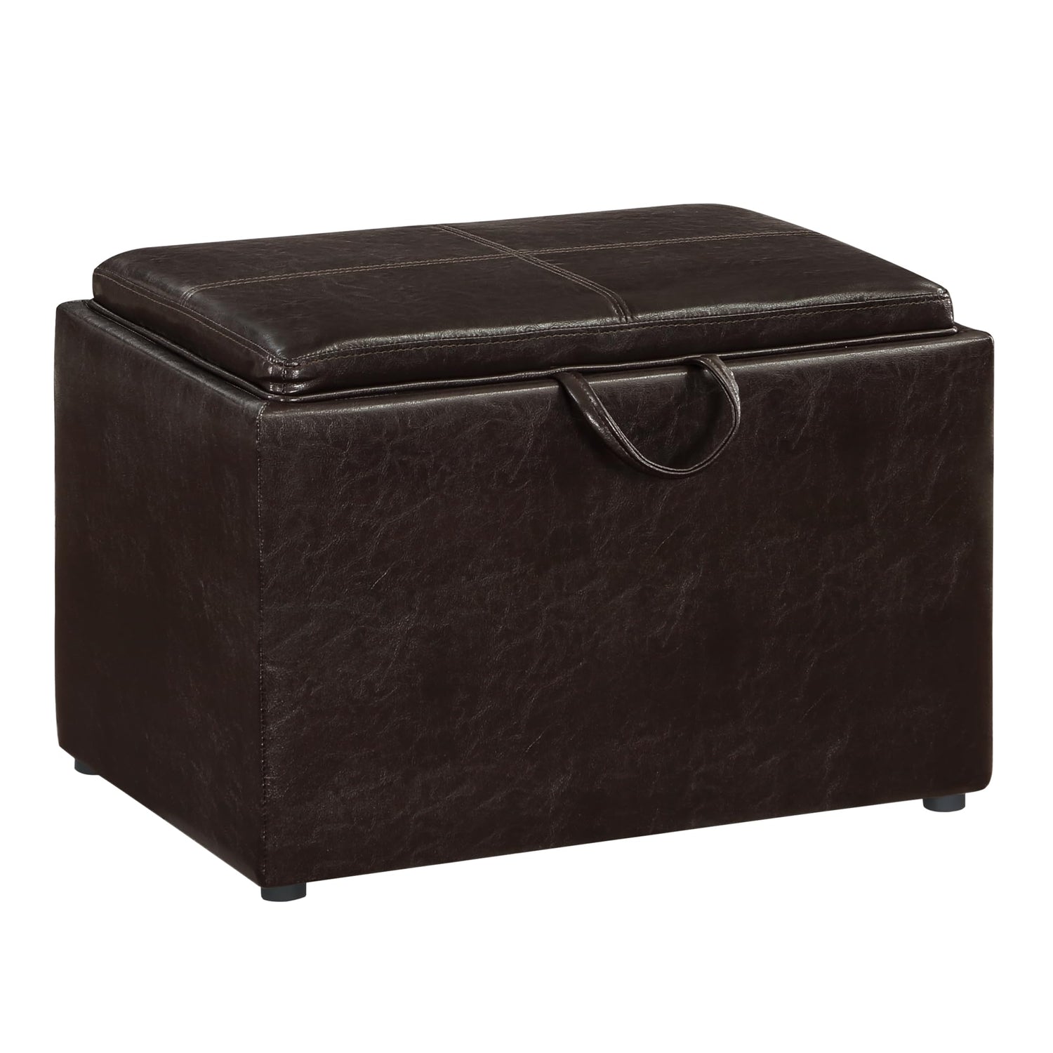 Convenience Concepts Designs4Comfort Accent Storage Ottoman 22.75" - Modern Foot Stool with Decorative Tray for Living Room, Dining Room, Office, Den, Espresso Faux Leather
