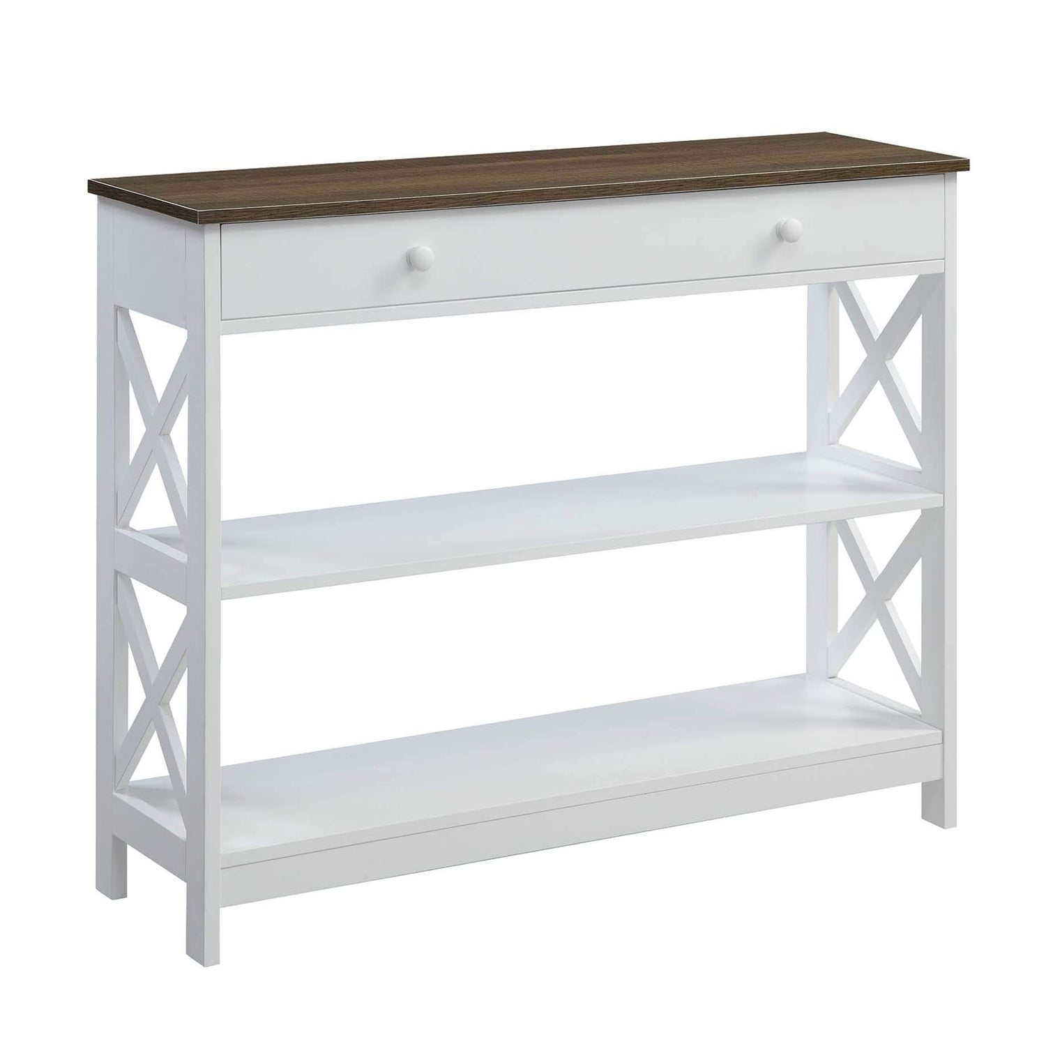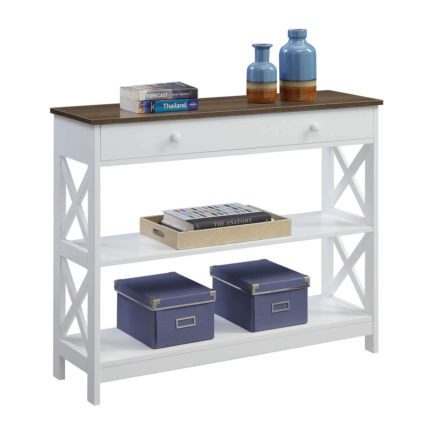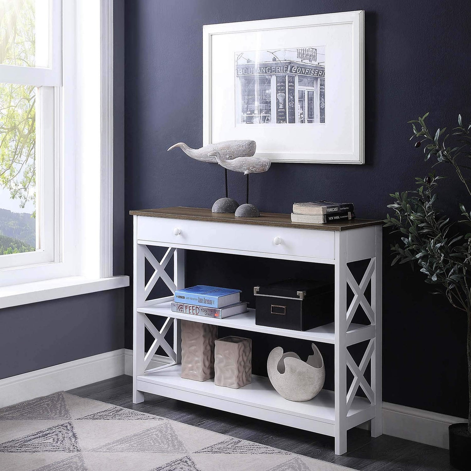 Convenience Concepts Oxford 1 Drawer Console Table with Shelves, Driftwood/White