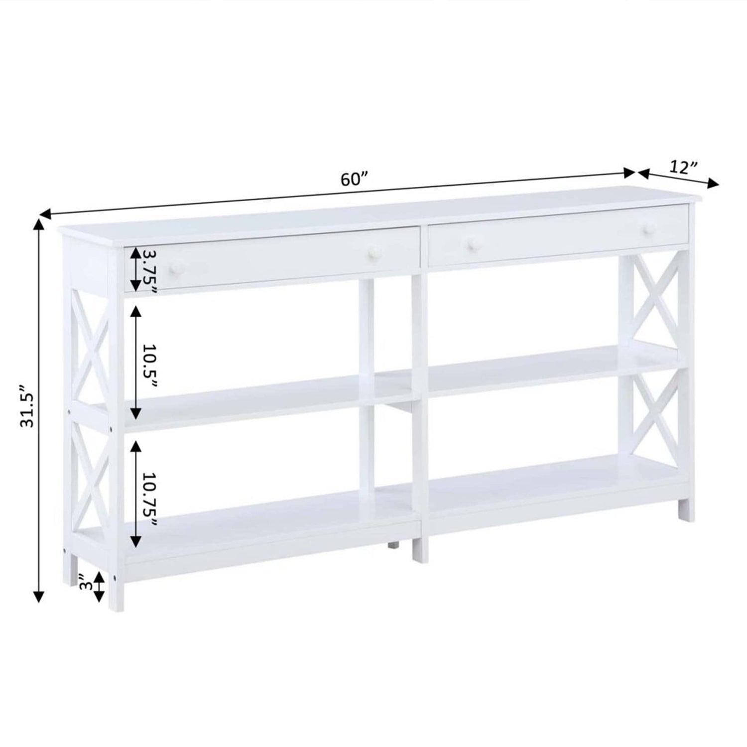 Convenience Concepts Oxford 2-Drawer Console Table with Shelves, 60", White