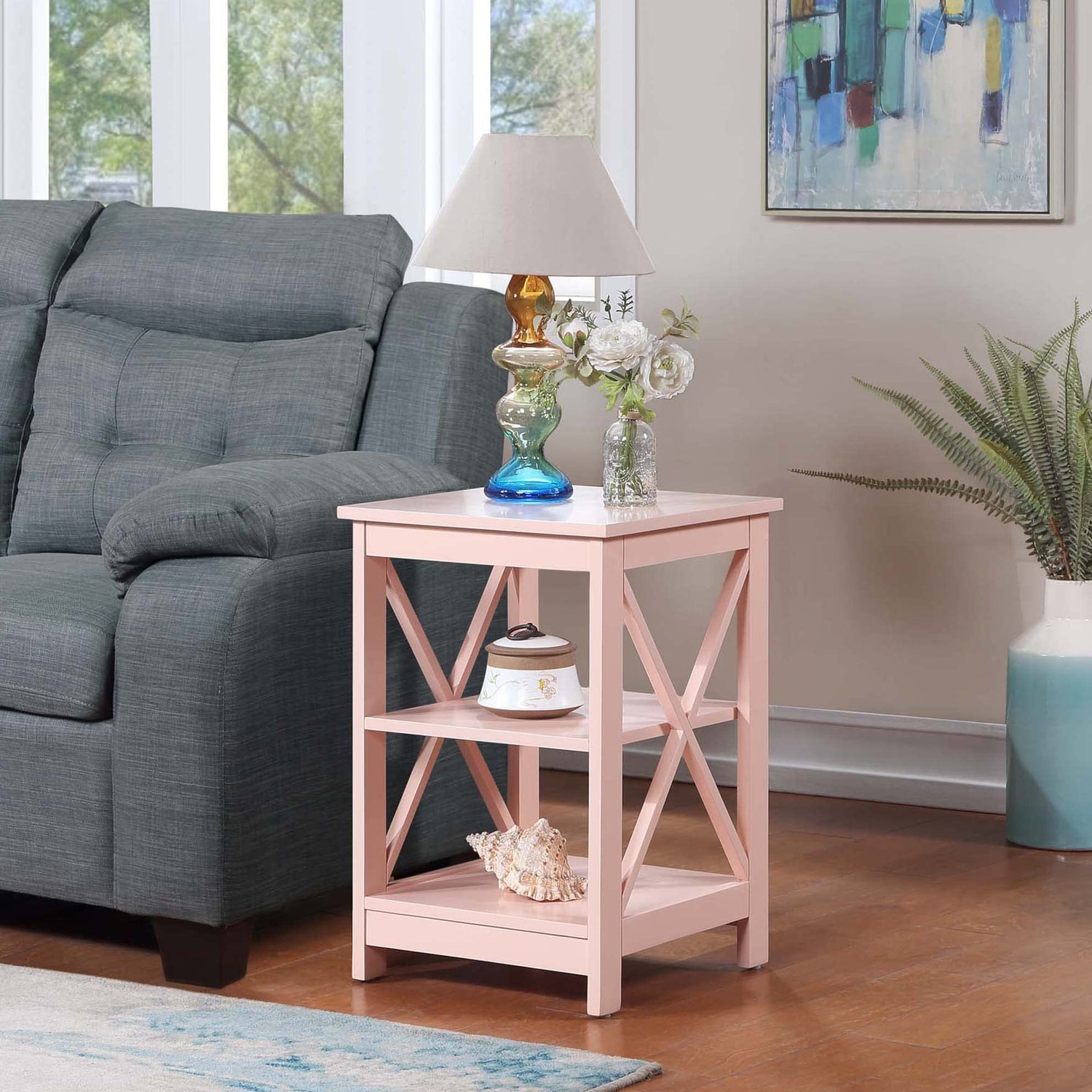Convenience Concepts Oxford End Table with Shelves, Blush Pink