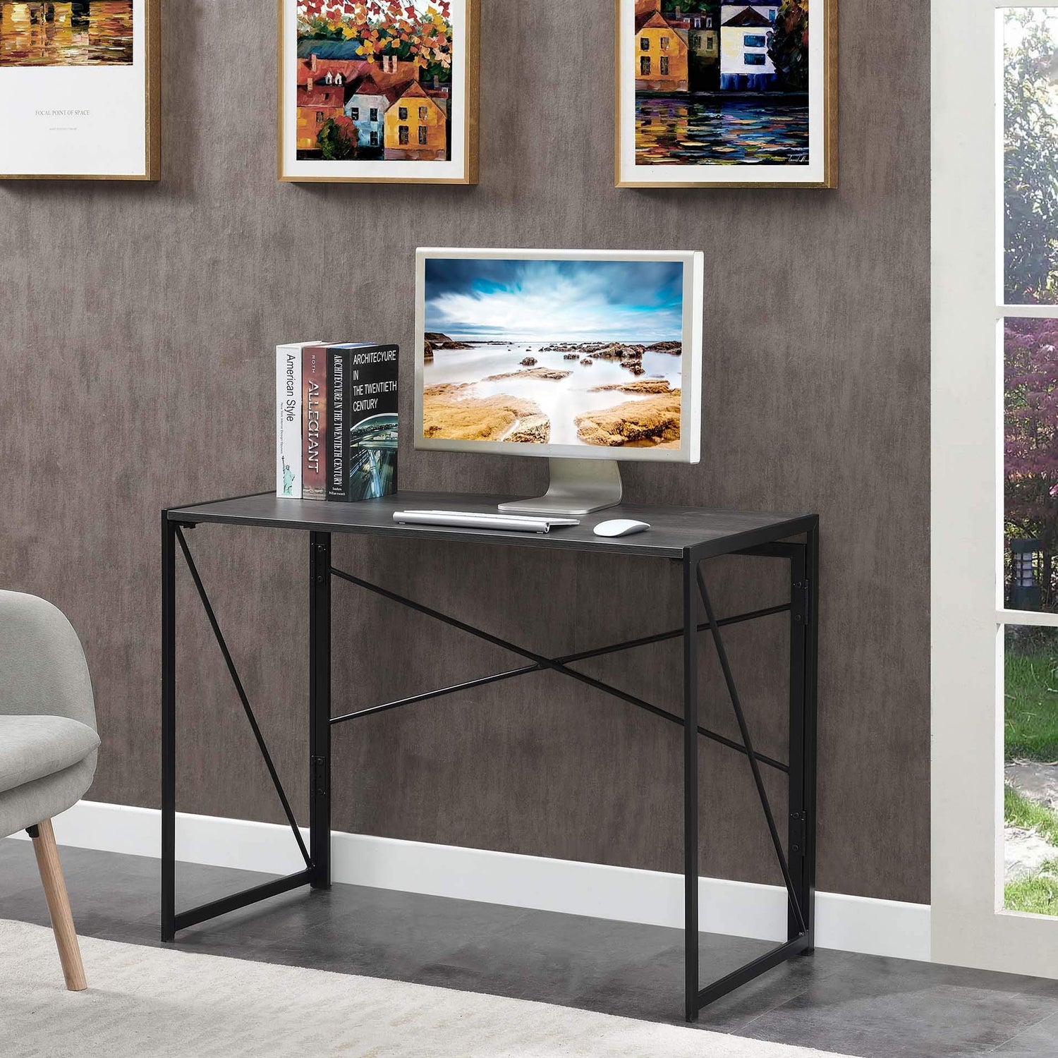 Details: Looking for an easy to use; inexpensive solution for converting any room into a workspace? The Xtra Folding Desk by Convenience Concepts is the answer! With only a few simple steps; this desk can be assembled and ready to use in minutes. This spacious desktop offers plenty of room for a laptop; notebook; and much more. To disassemble; simply remove the tabletop from the support frame and fold the legs inwards. When not in use; storing this desk requires minimum space and can be stored in a closet or underneath a bed. Built for simplicity and ease; this tabletop is made from particleboard and finished with a protective layer of melamine. The legs of this desk are made of sturdy powder-coated metal for long-term use. Working from home does not get any easier than this! Available in multiple colors and finishes; you are sure to find an Xtra Folding Desk to match your workspace.