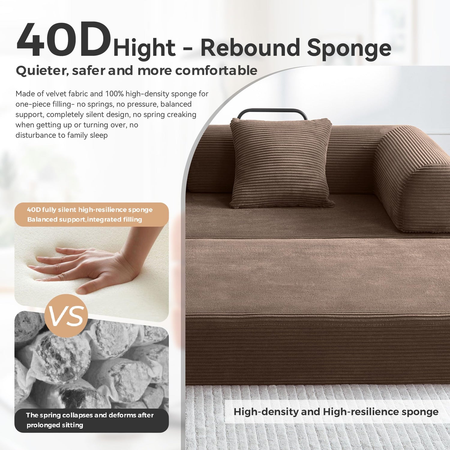 - 【High-quality Material】 Our convertible sleeper sofa bed is made for tactile luxury with premium corduroy fabric, woven for velvety softness. Paired with high-density sponge cushioning, this sofa offers cloud-like support that retains its shape through years of lounging, naps, and playtime.