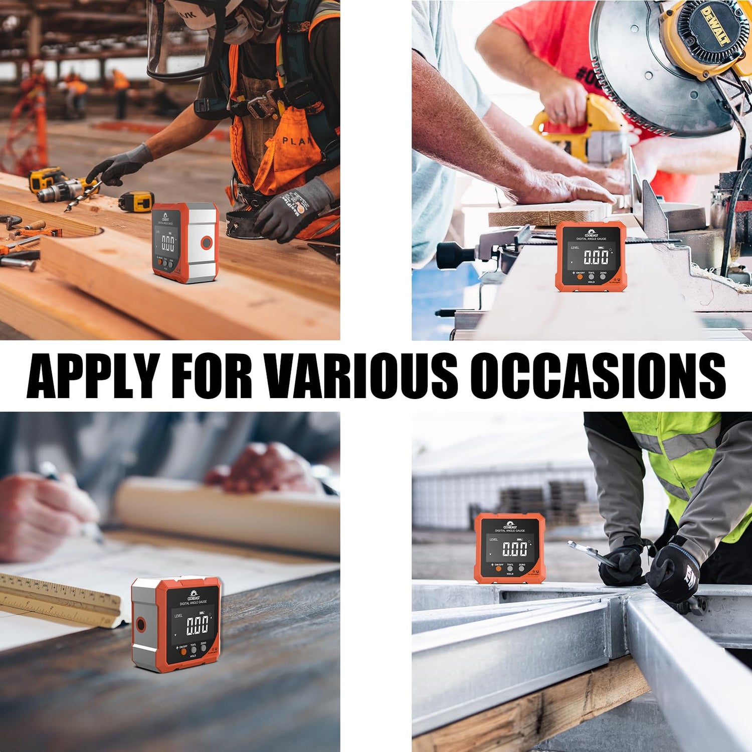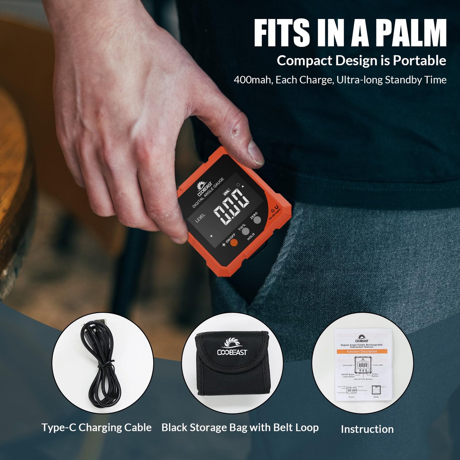 - PORTABLE & RELIABLE- Lightweight and heavy-duty digital angle finder tool is easy to carry and use, meets most woodworking, operation, home maintenance and decoration needs. Also a great gift for men at festivals. Coobeast tools have quality assurance, feel free to contact us if there are any problems with the product. We provide you with service for the first time.
