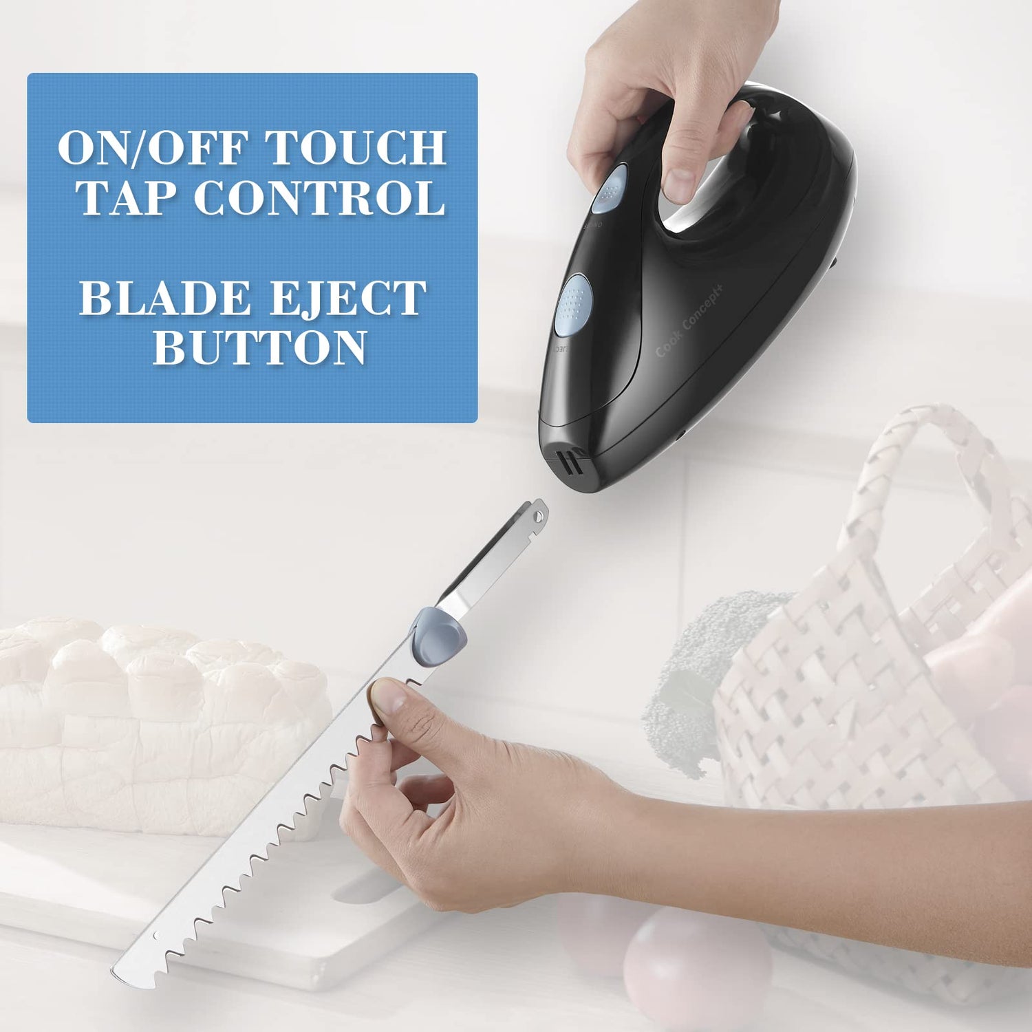 Cook Concept Electric Knife for Carving Meat, Fish, Turkey, Bread, 2 Interchangeable 8" Serrated Blades, Lightweight, Efficient Slicing,Thanksgiving Gift