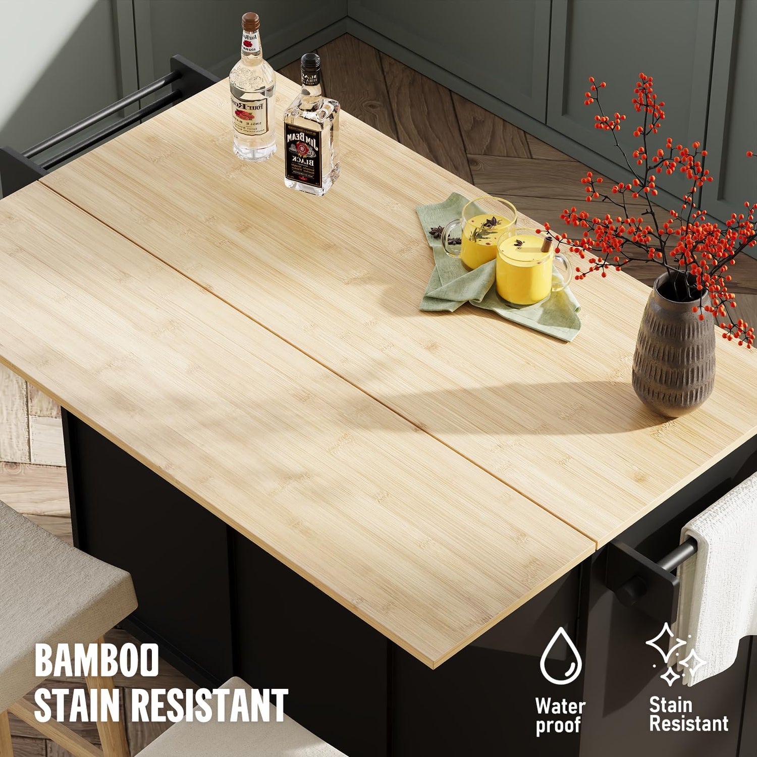 - [Versatile Drop Leaf Design] The mobile kitchen island with drop leaf offers versatile functionality. You can easily extend the leaf for additional counter space when preparing meals or fold it down for a more compact size when not in use. This feature makes it perfect for kitchens of all sizes, providing flexibility without compromising on style or space