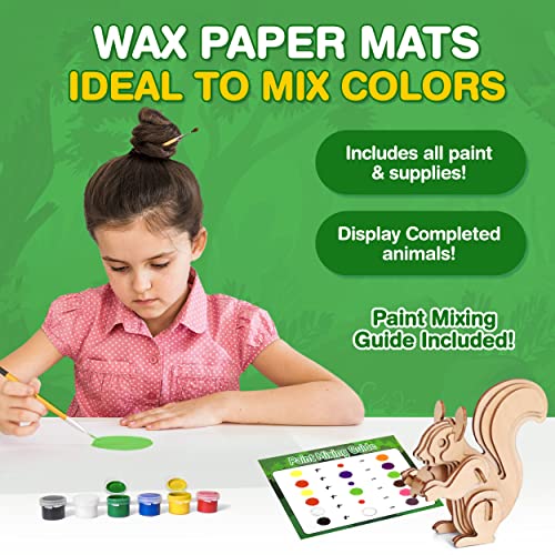- All-Inclusive Artistic Wonderland - The Paint n' Play kit comes packed with everything needed for a magical crafting session: 2 wooden models (Deer and Squirrel), 6 vivid paints, 2 brushes, sandpaper, paint palette, mixing guide, wax-coated paper mats, and delightful fun facts sheets. This comprehensive set ensures endless hours of fun and creativity, making it the perfect choice for children eager to explore the enchanting world of art and nature.