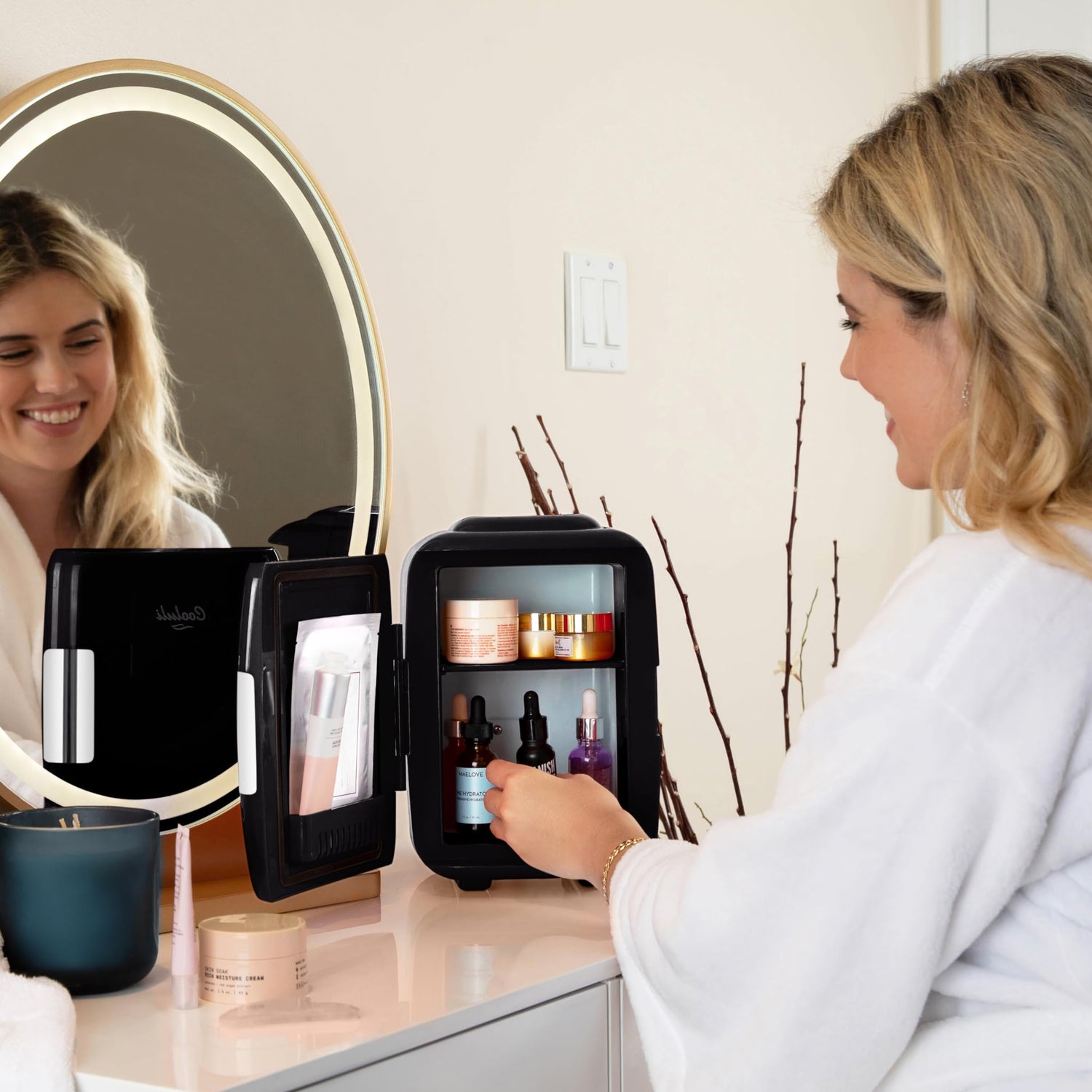 Cooluli Mini Fridge for Bedroom - Car, Office Desk & Dorm Room - Portable 4L/6 Can Electric Plug In Cooler & Warmer for Food, Drinks, Skincare Beauty & Makeup - 12v AC/DC & Exclusive USB Option, Black