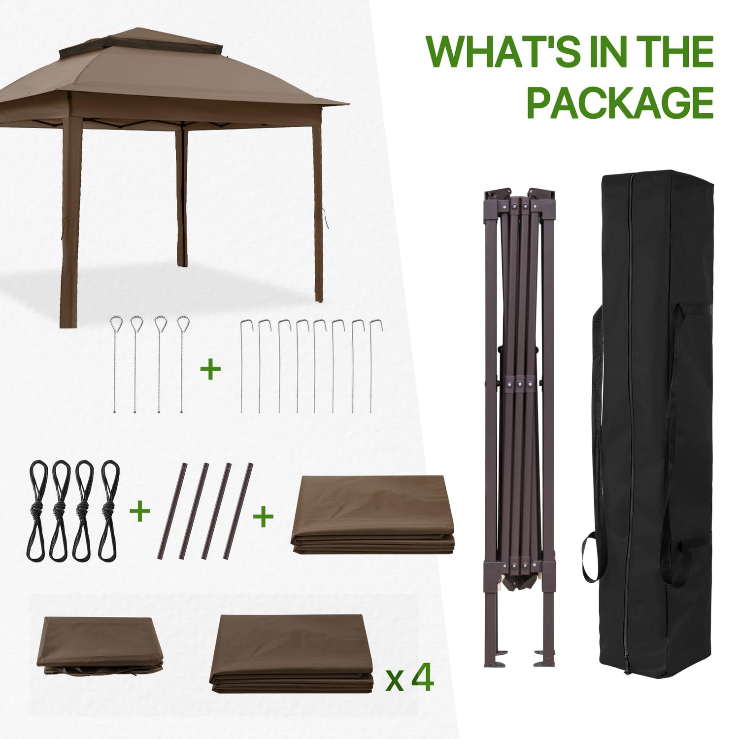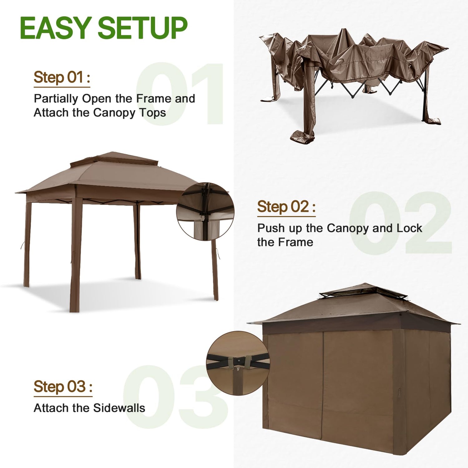 COOS BAY 11x11 Pop-up Instant Gazebo Tent with 4 Sidewalls Outdoor Canopy Shelter with Carry Bag, Stakes and Ropes, Brown