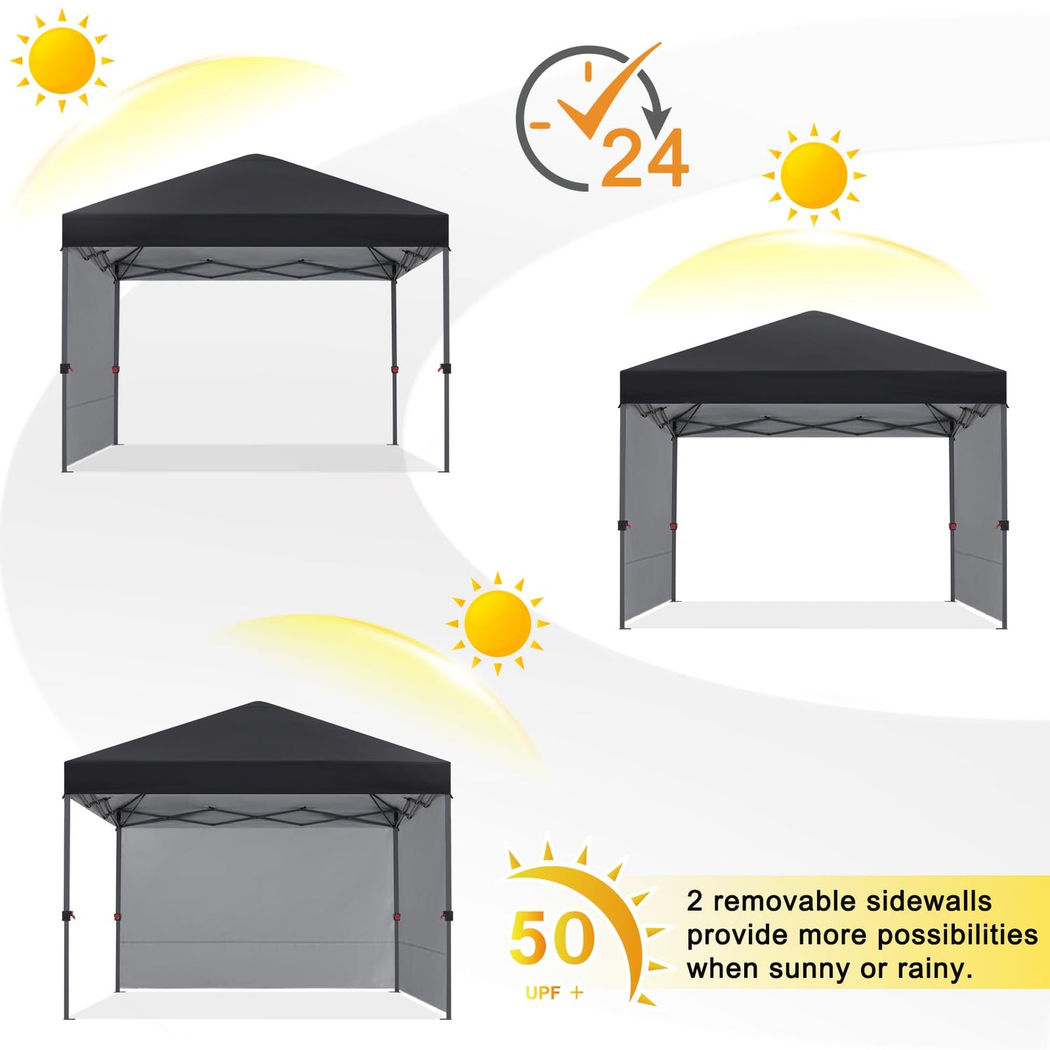 COOSHADE Pop Up Canopy Tent 10x10 with 2 Sidewalls, Outdoor Shade Instant Canopy Tents(Black)