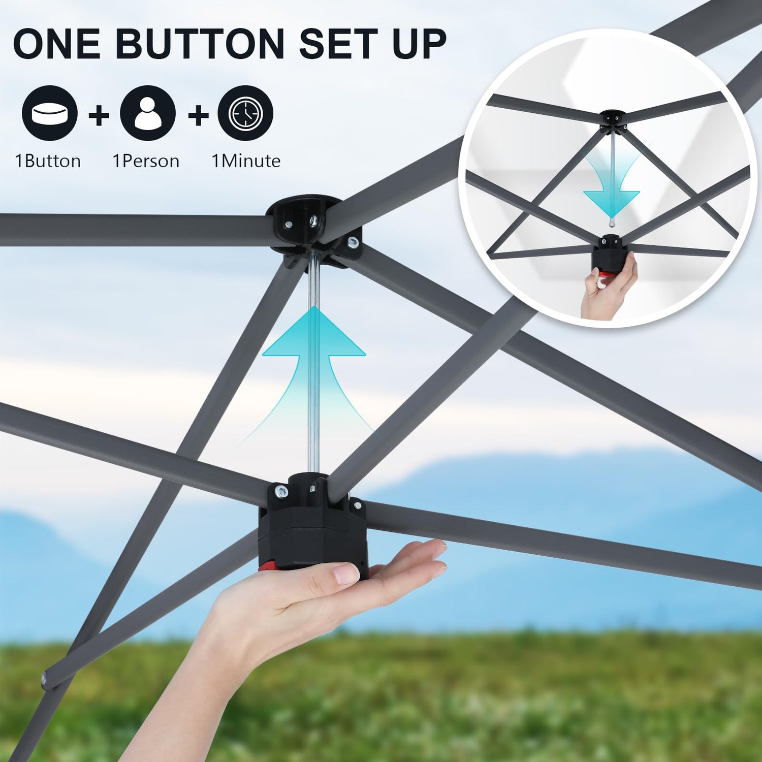 - 【60 SECS EASY SET UP】The COOSHADE canopy tent is designed with fully assembled One-Piece frame in high gauge sturdy metal.No tools needed,seamlessly enables one-person set-up in one minute.Enjoy the shade quickly and easily under the sun.