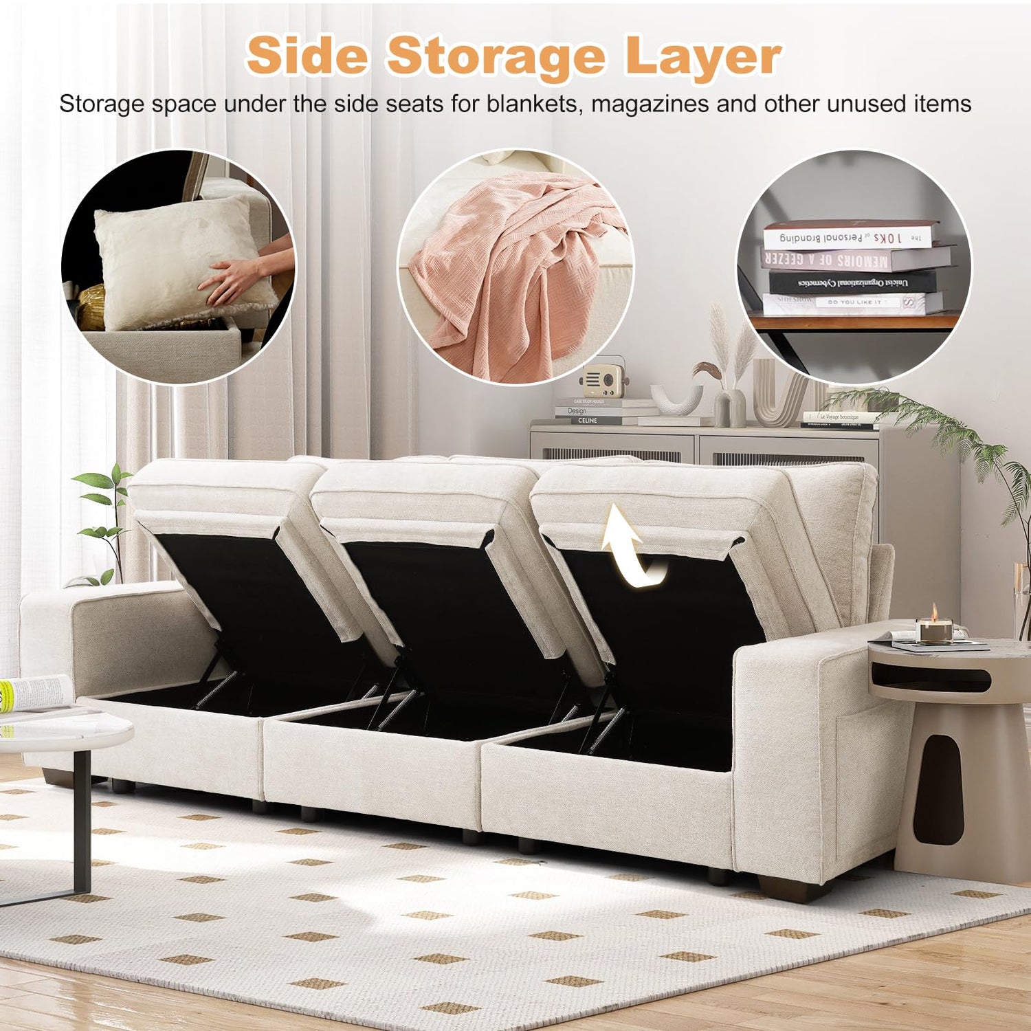 COOSLEEP 3 Seater Sofa Couch with Storage Layer, Removable and Washable Cushion Cover, Modern Sofa-100 Sofa with Solid Frame up to 1200Lbs, Couches for Living Room, Beige Chenille