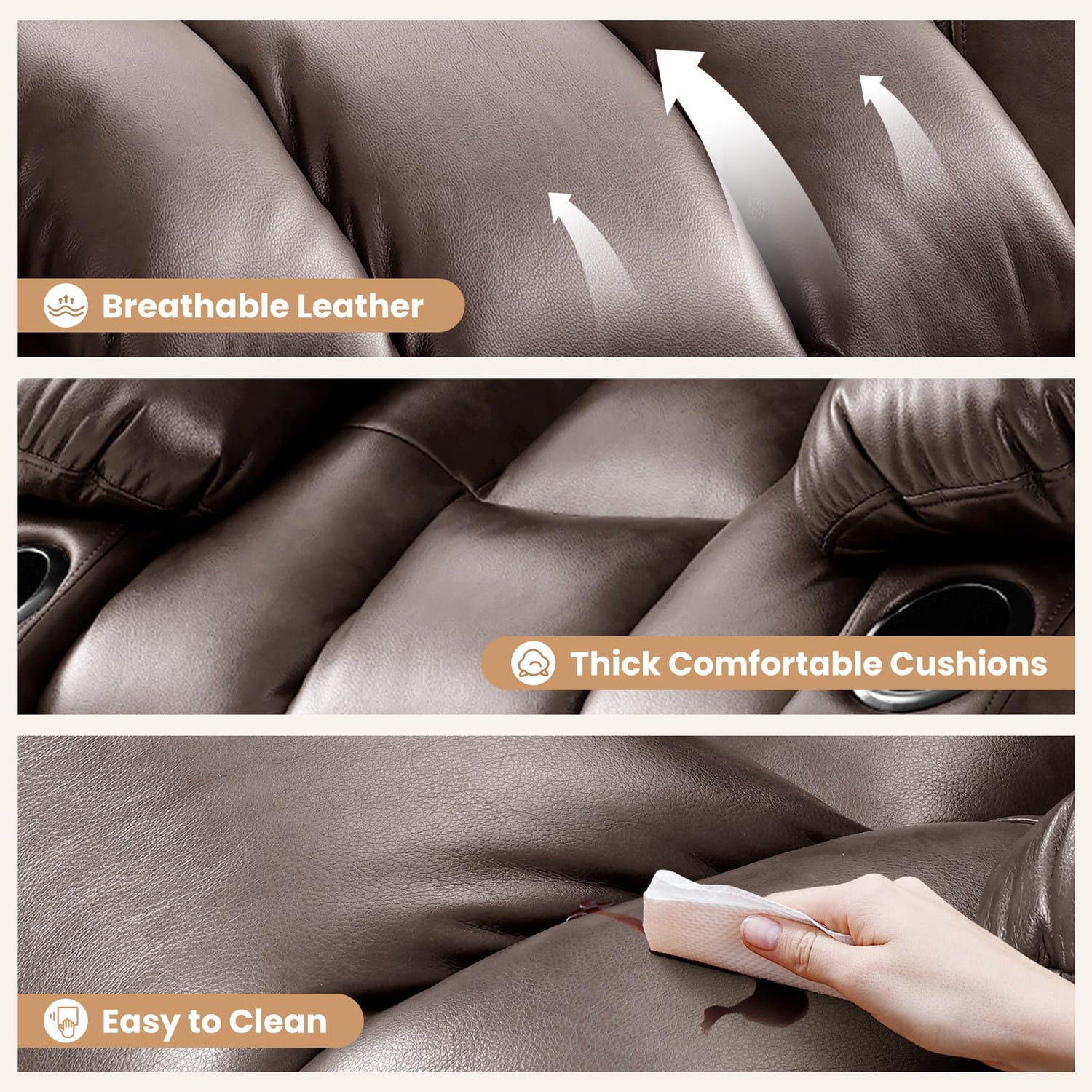 - [High Quality]: Our leather recliner chair offers a luxurious blend of comfort, breathability, durability, and easy maintenance. They are crafted from durable PU leather that is both resilient and easy to clean. Simply wipe clean with a damp cloth for hassle-free upkeep. the high-density sponge filling in the backrest, seat cushion, and armrest ensures optimal comfort, breathability, and long-lasting durability. The base is a sturdy metal frame that can withstand a maximum weight of 350 lbs and is durable. Even sitting in the living room for a long time can make you feel comfortable. A perfect gift for a family