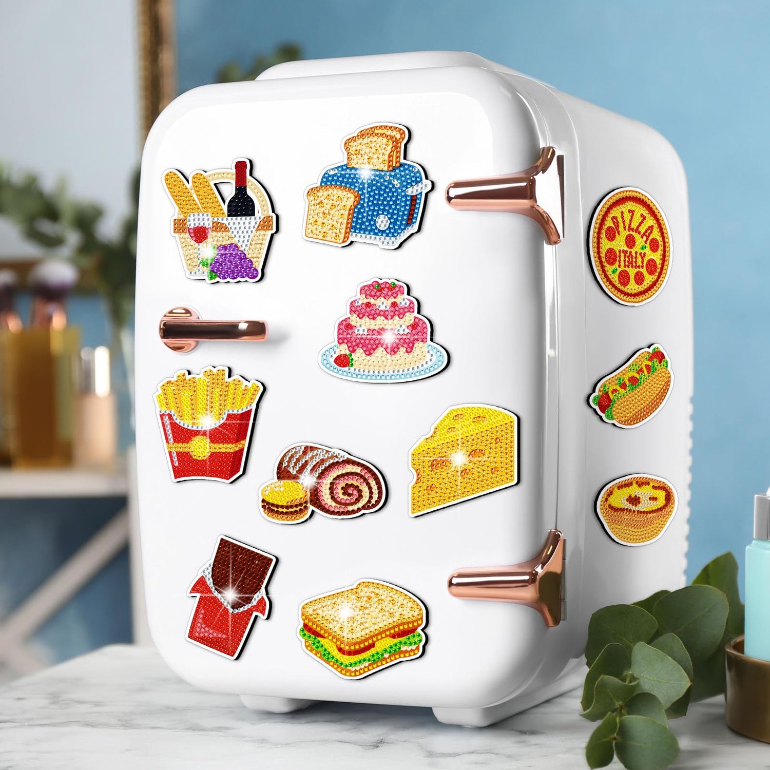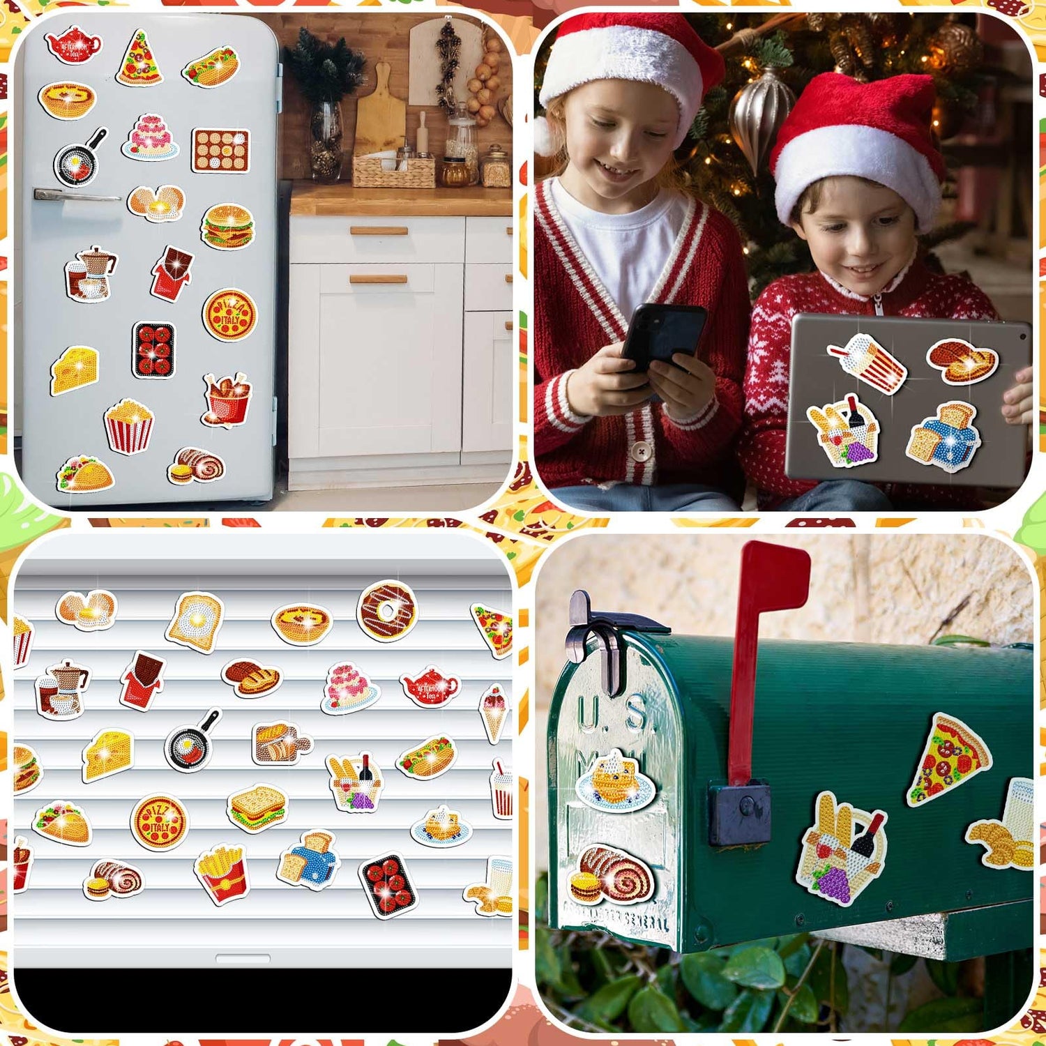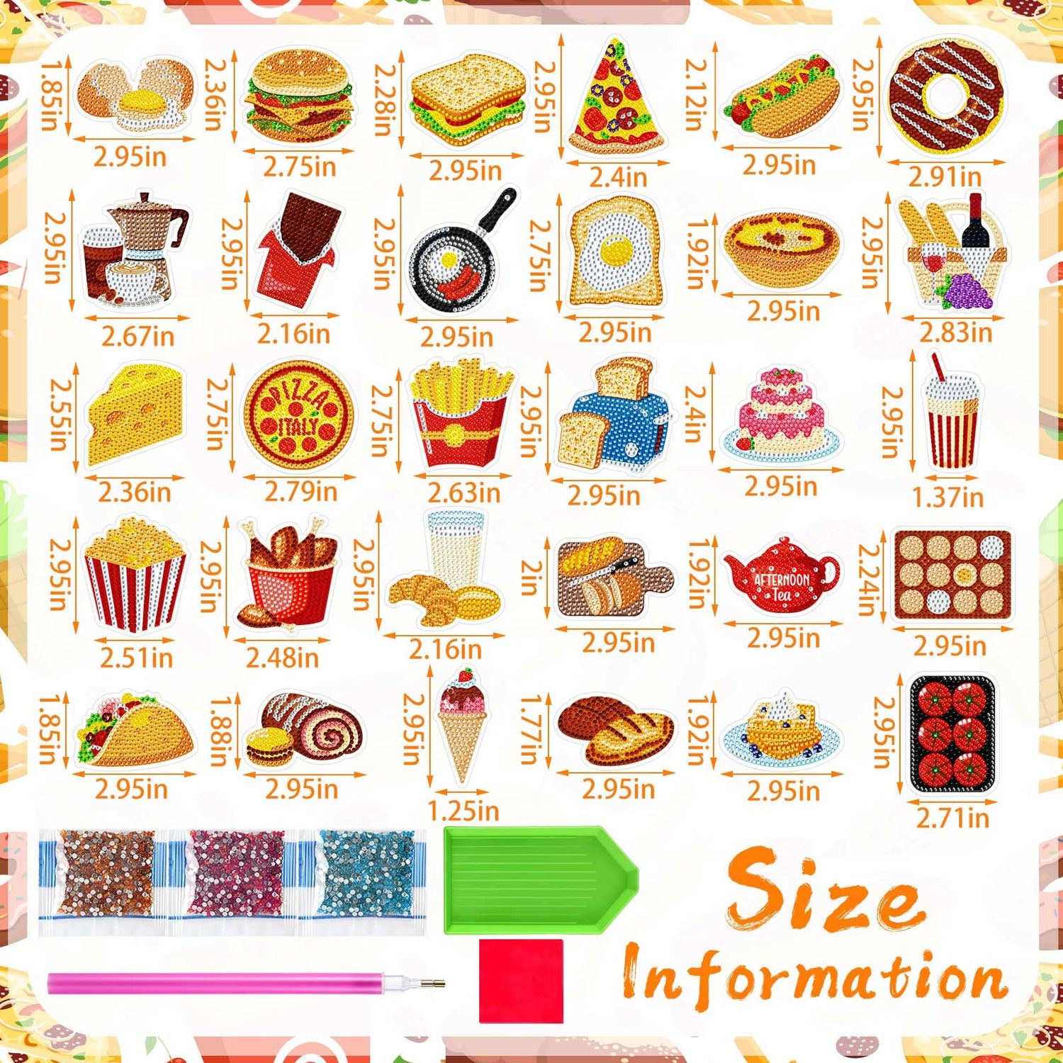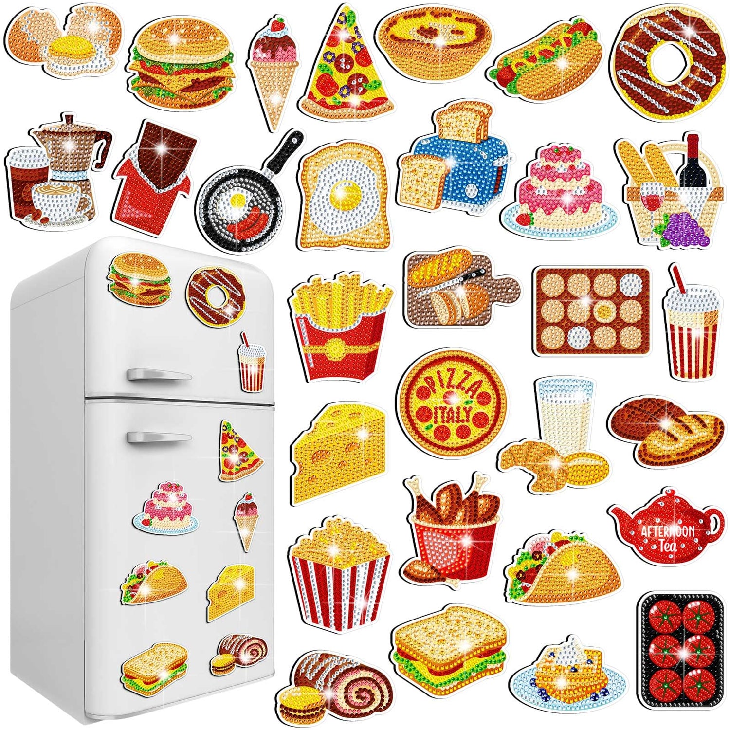 Copkim 30 Pcs Diamond Art Magnets Easy Diamond Painting Magnet Kits for Adults Kids DIY Fridge Home Decors(Food)
