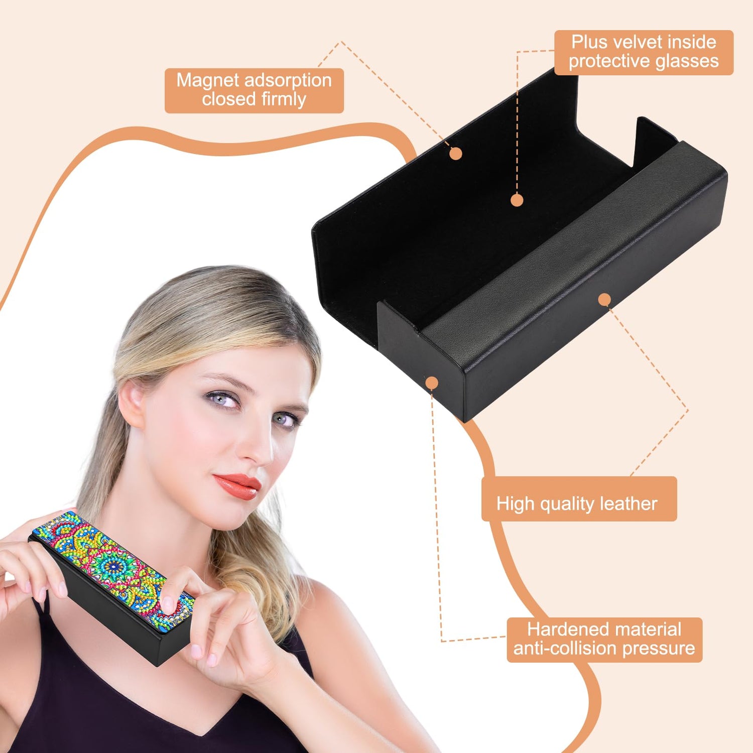 - Quality Material: the diamond painting sunglass case is made of quality PU leather, with a soft lining inside, smooth and sturdy, serving you for a long time; The stable structure ensures that your glasses won't easily be scratched, keeping your glasses clean and safe