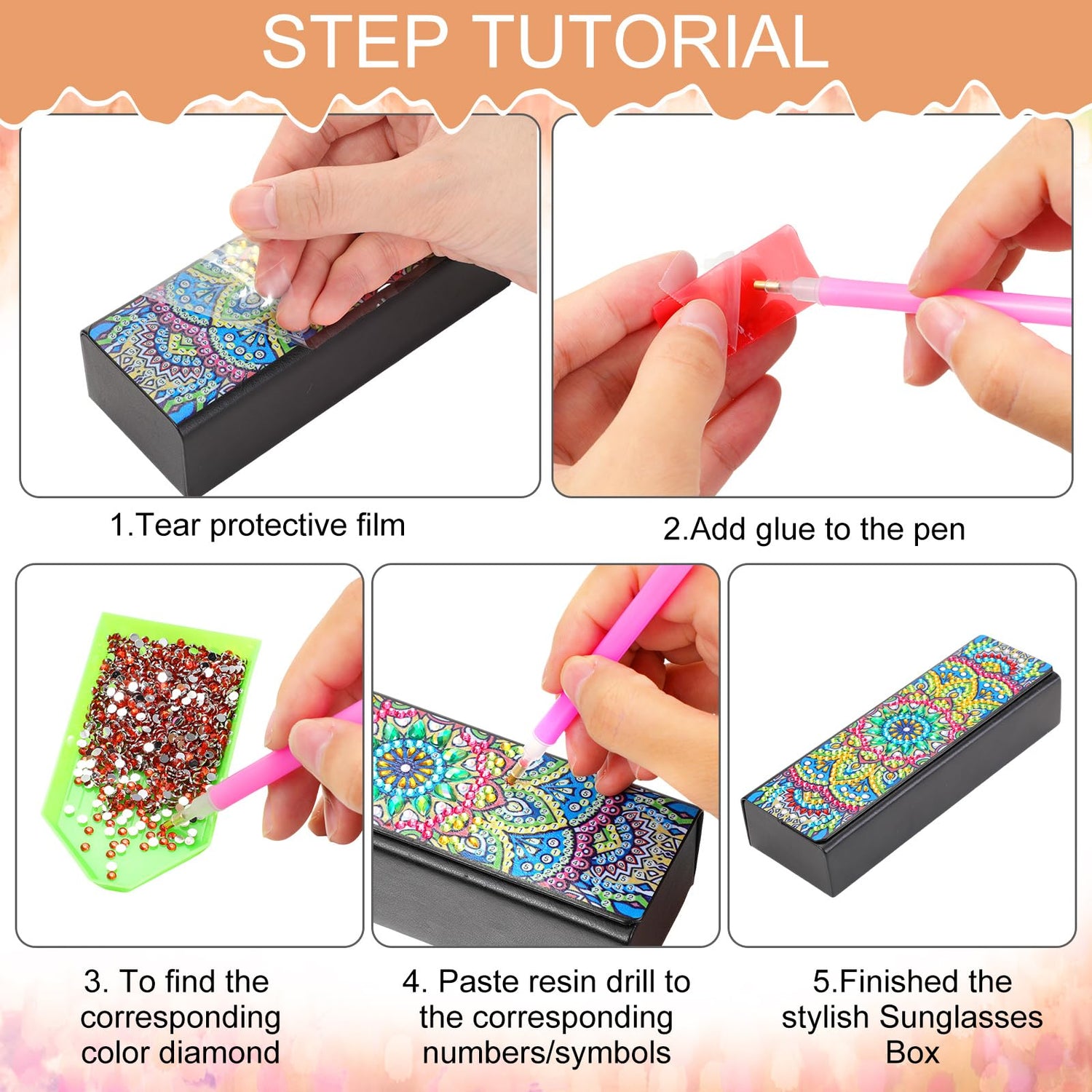 Beyond the functionality, the DIY glasses case is attractive and creative with the diamond paintings. The vibrant mandala patterns are so appealing and eye catching, showing your good taste.