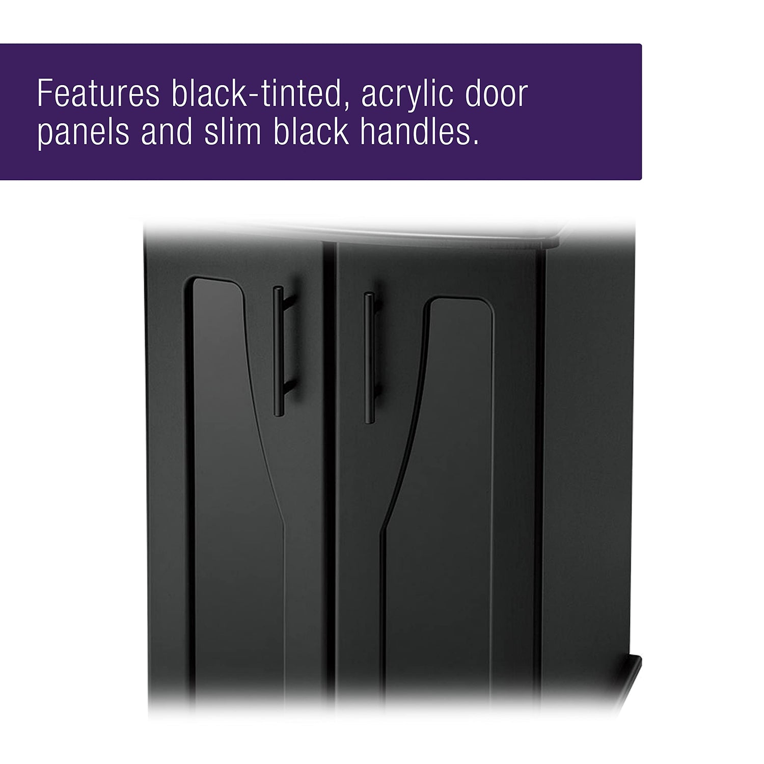 - Features door with black tinted acrylic panel for added elegance and slim handle