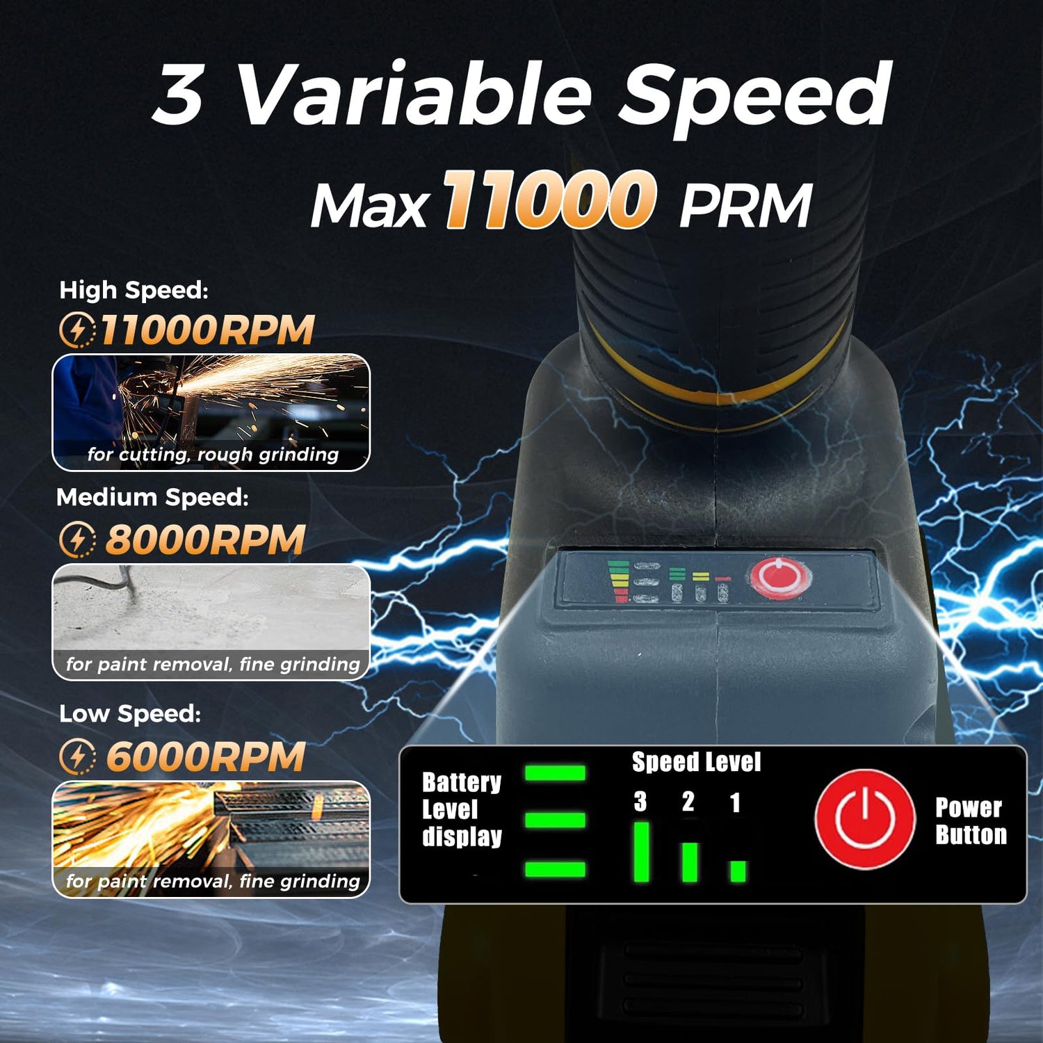 - 🔧 【Wide Accessory Compatibility:】 Our electric grinder power tools compatible with various 4-1/2 inch blades, discs, and grinding wheels, 3 variable speeds for a wide range of grinding, polishing, and cutting tasks.