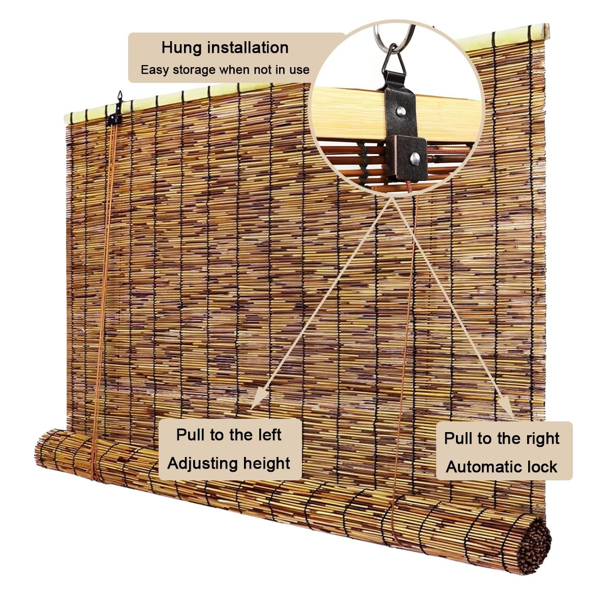 - ✅【Easy to Install】: Bamboo roller up shades can be used for both indoor and outdoor installations, roller window shades can be easily installed with a simple hook.
