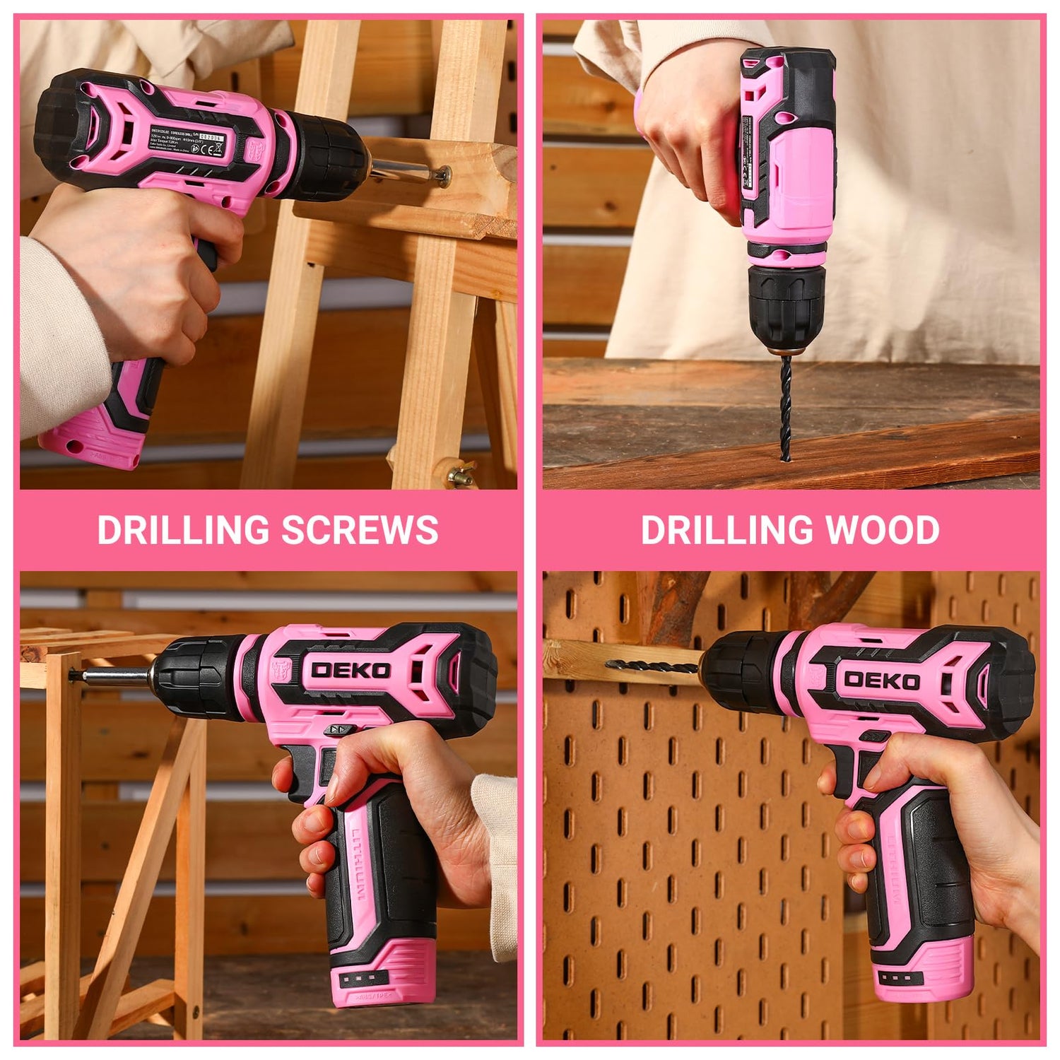 Cordless Drill:DEKOPRO 12V Power Drill Set with Pink Electric Drill with Tool Set Gift Box, Pink Drill Set for Women