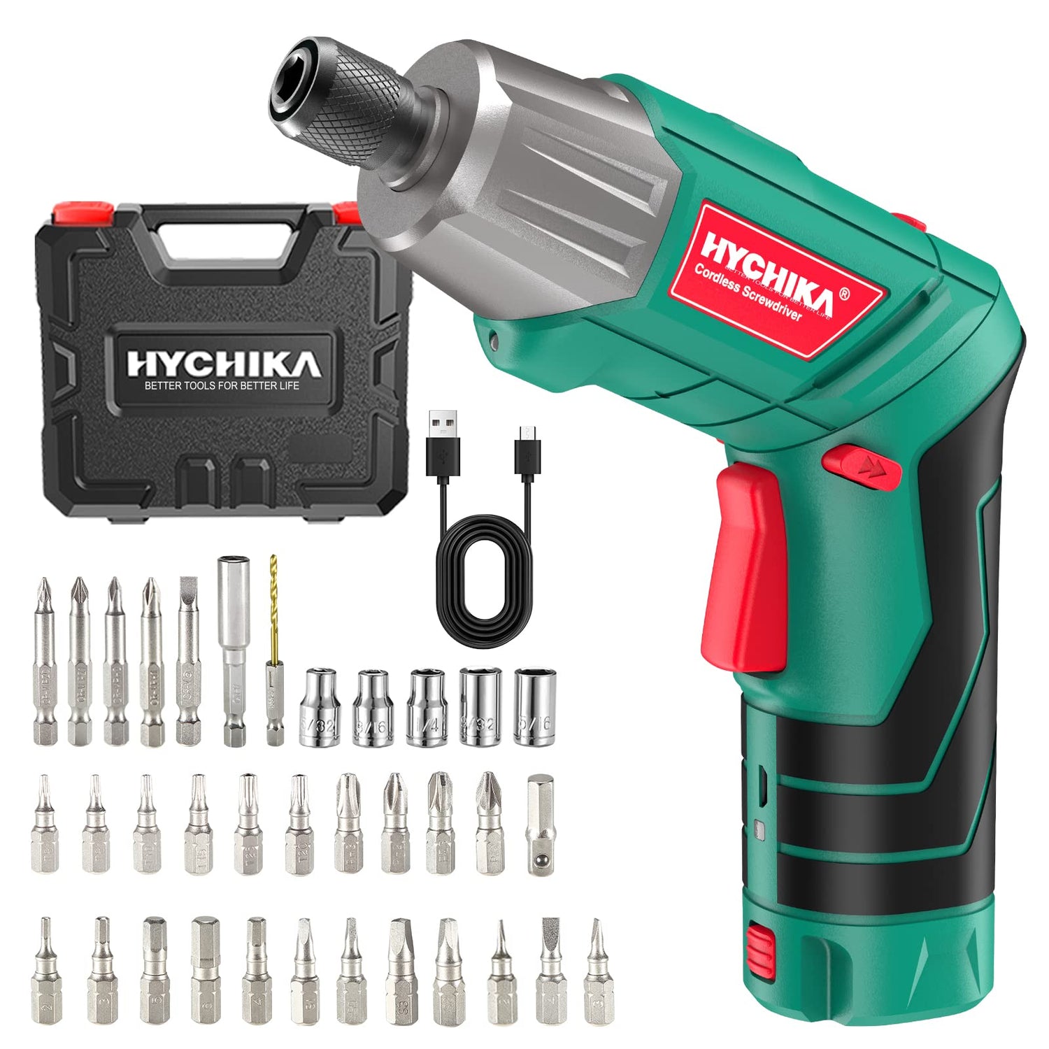 - 🌟[WHAT YOU GET] 1 x HYCHIKA 3.6V cordless screwdriver; 36 x accessories; 1 x charging adapter, 1 x USB charging cable; 1 x user manual; 1 x storage box