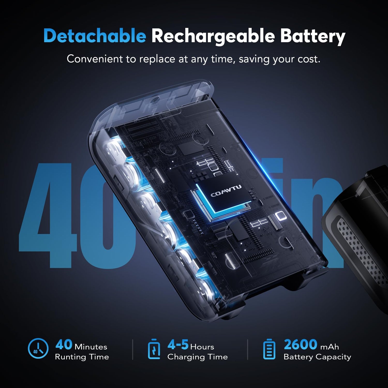 - ๐๐๐๐ข๐ง๐ฌ & ๐๐๐๐ข๐ง๐ฌ ๐๐๐๐ฎ๐ฎ๐ฆ ๐๐ฅ๐๐๐ง๐๐ซ๐ฌโ The Comvtu cordless vacuums uses an 80,000RPM ultra-high-speed BLDC brushless motor that can switch between 2 modes: LOW (40Mins) and HIGH (20Mins). 2200mAh batteries can be removed and charged separately, and additional batteries can also be purchased to increase the use time of the aspirateur! Ideal for single apartments, pet families, RV travel, Camper Vac.