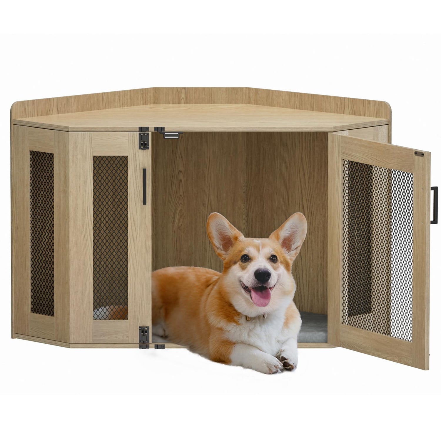 - Elegant Corner Dog Crate: This indoor pet crate features a corner design that perfectly fits against the wall, helping maximize the utilization of corners in your home. It is ideal for small living spaces and provides cozy home for your furry friend