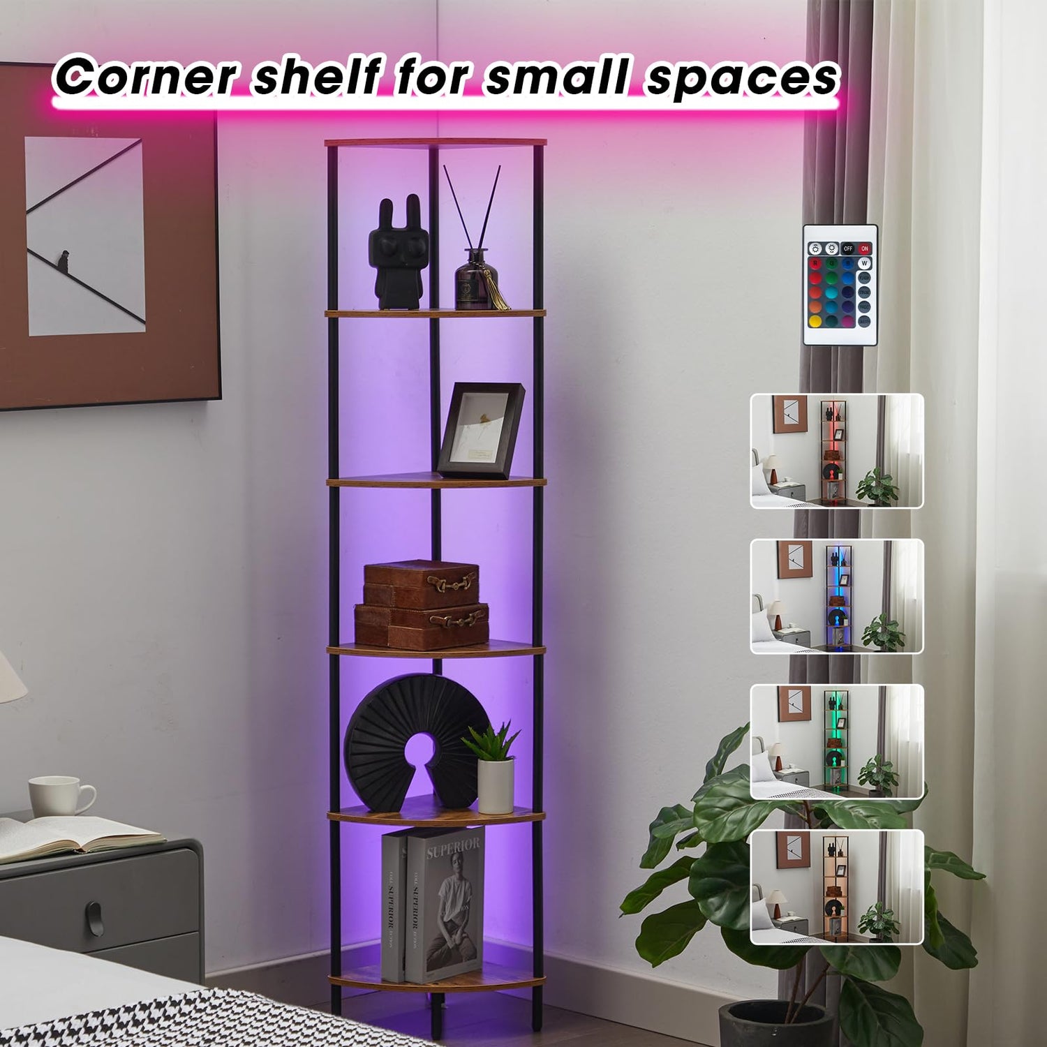 - LOTS OF COLORS WITH LED STRIP: This corner shelf with LED light strip features a variety of light colors to choose from. The brightness of the light can be freely adjusted, and this high corner shelf has a remote control function, so you can easily control the lighting mode while sitting on the sofa or bed.